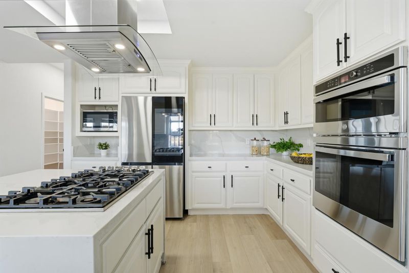 - Cooktop - Gas, Countertop - Quartz, Dishwasher, Exhaust Fan, Garbage Disposal, Hood Over Range, Island, Pantry, Refrigerator