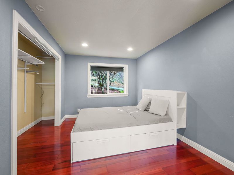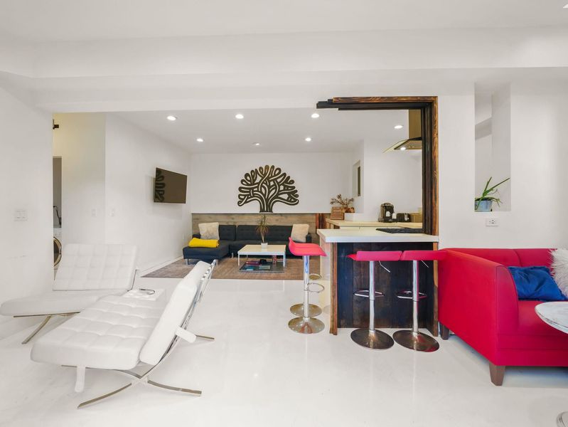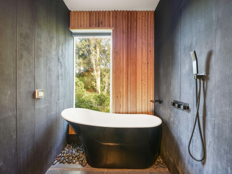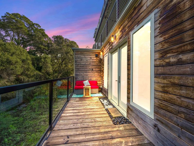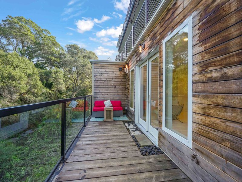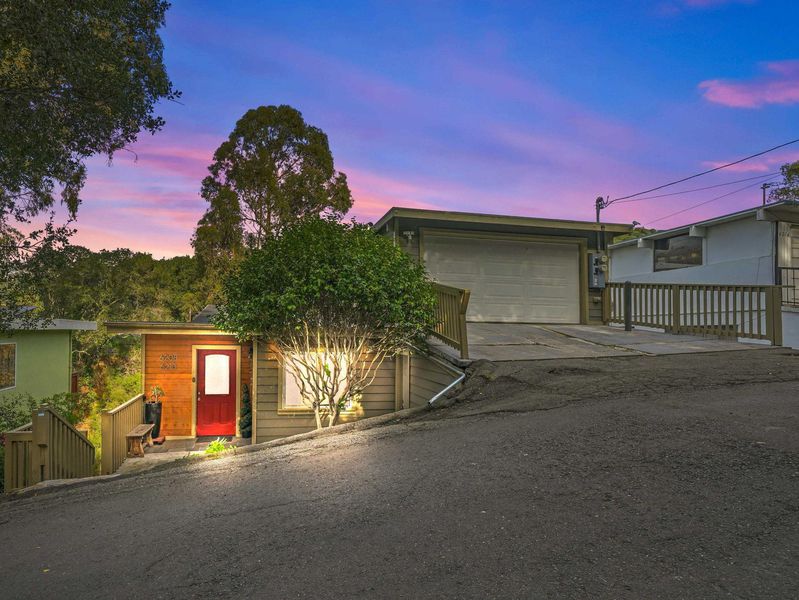 Three levels of pure serenity await in this stunning hillside retreat designed for both grand entertaining and peaceful everyday living.The top floor showcases an airy open-concept layout, framed by floor-to-ceiling windows and a wall of glass that opens to a deck spanning the entire length of the home. Perfect setting for hosting unforgettable gatherings with friends and family while enjoying indoor-outdoor living. This level also features two generously sized bedrooms, a full bathroom, and a stylish kitchen complete with quartz countertops, newer appliances, and a modern backsplash.The entire next level is dedicated a true private oasis. This expansive retreat includes a spa-like bathroom with a deep jetted soaking tub, an open dual-headed shower, and a spacious walk-in closet. Large windows and an extended private deck create a tranquil escape. Adding incredible value and versatility is the beautifully designed ADU. This open-concept space features a cozy gas fireplace, concrete kitchen counters with breakfast bar, an eat-in nook, and a thoughtfully designed bathroom with a deep standalone tub and open shower area. The large bedroom includes a walk-in closet and a comfortable sitting area—ideal for guests, extended family, or rental income.