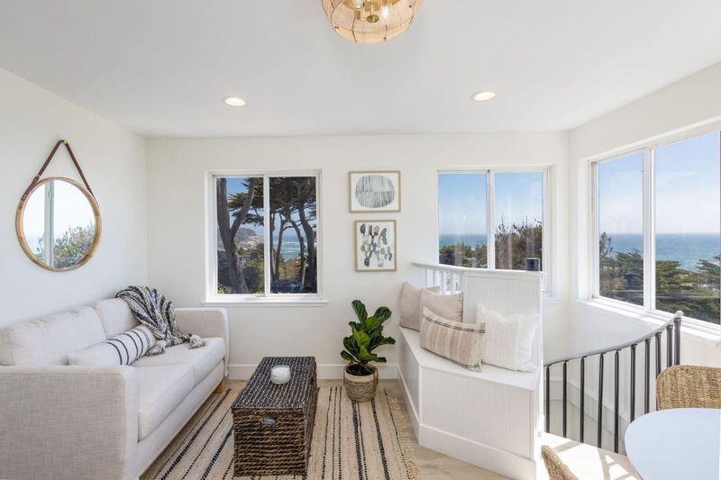 OCEAN VIEWS TO DIE FOR!!! The end of a quiet and idyllic cul-de-sac in Moss Beach sits this remodeled 3 bedroom, 2 bath oceanfront cottage, blending historic character with modern comforts. Panoramic views of the Pacific set the stage for daily sightings of whales, seals, seabirds, and the soothing sounds of the sea. The two-level layout is connected by a spiral staircase and includes a separate bonus writers cottage with its own history and inspiring ocean views. Inside, a light-filled kitchen with painted cabinets, updated baths, and thoughtfully chosen finishes throughout make this home move-in ready. Multiple outdoor entertaining areas and on-site laundry add to the appeal. Just a 3 to 5 minute stroll leads you to the nearby beach and iconic lighthouse. Whether as a peaceful coastal getaway, a full time residence, or a high-demand rental, this one-of-a-kind property offers endless possibilities. *Buyer is to verify and acknowledge square footage, lot size, bedroom and bathroom count as they differ from county records.