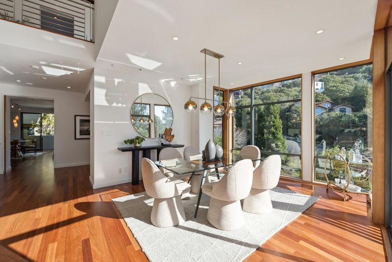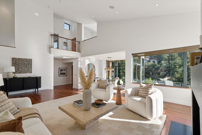 Perched on the Oakland/Berkeley border, 1015 Grand View Drive is a striking five-story residence offering privacy, scale, and serene treetop views. Approximately 5,000 sq ft, the home features 5 bedrooms and 4.5 baths, with expansive windows that flood the interiors with natural light and frame lush greenery throughout. The main living level is ideal for both everyday living and entertaining, with a spacious kitchen, family room, living room, and powder room flowing seamlessly to a garden terrace. Three bedrooms, including a generous en suite, occupy the level below, while the top floor is dedicated to an expansive primary suite with a large bath and abundant storage. A flexible in-law unit accommodates guests or an au pair. Decks on every level enhance indoor/outdoor living, complemented by an elevator, 2-car garage, and exceptional storage. Located just minutes from Bart, highway 24 & 580 The Claremont Club & Spa, as well as the shops and restaurants of Elmwood and Rockridge, this architectural gem offers a peaceful retreat within Berkeley and Oakland’s vibrant lifestyle – Berkeley mailing, Oakland services.