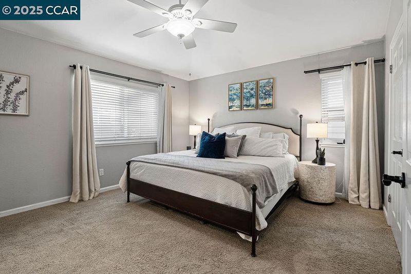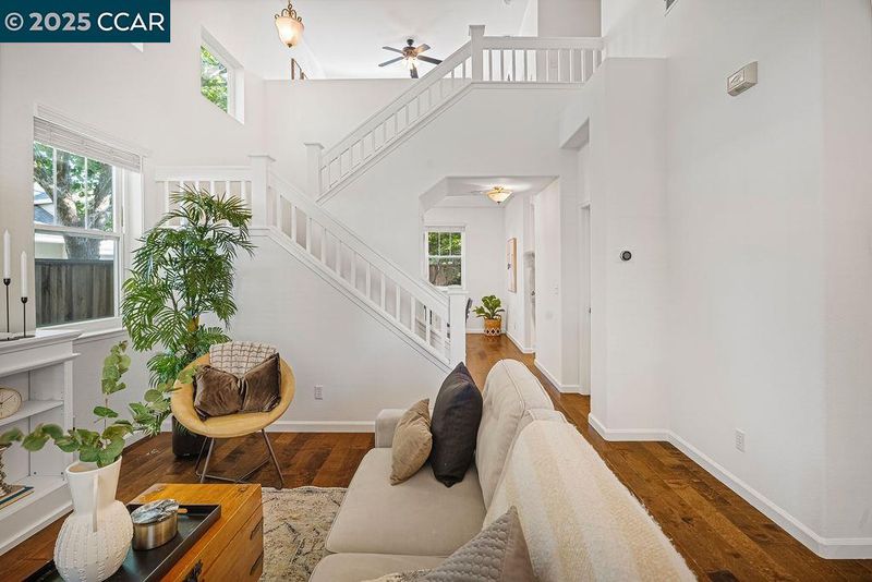 Beautiful, serene and Northeast facing! Set on a corner lot, wonderful popular community close to our beautiful Iron horse trail, walk to beautiful family park, shopping, Starbucks, trails, the tot lot for kids on the corner, and a neighborhood park as well, award winning schools, BEST VALUE IN SAN RAMON lots of natural light, newer Hvac, fresh paint, newer flooring upstairs and sellers have the same new flooring available to install on the main level, The spacious living and dining areas create a warm and inviting atmosphere, while the kitchen opens seamlessly to the family room with updated appliances, —making it the heart of the home. The 4th bedroom loft is the perfect space for a home office or children’s play area. Entertain friends and family or enjoy quiet evenings at home in the charming backyard, complete with covered patio and beautiful turf for very low maintenance living. Located in the quiet Easthampton community with top-rated San Ramon schools, nearby parks, walking trails, shopping and dining at The Lot City Center, and easy access to commute routes—this home truly has it all.