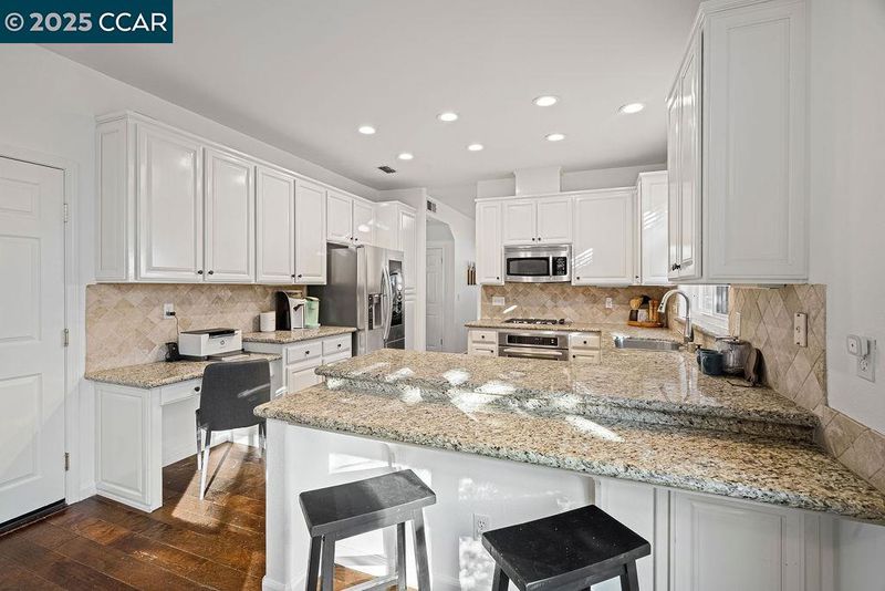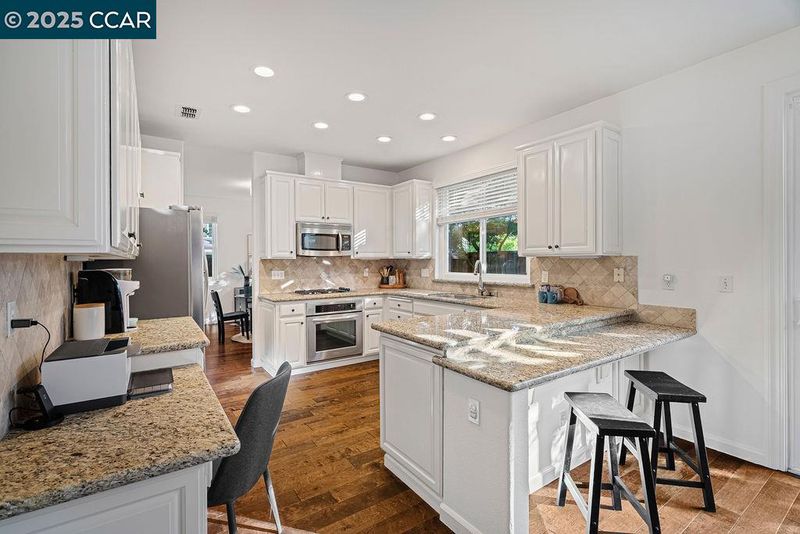 - Dishwasher, Gas Range, Microwave, Oven, Range, Breakfast Bar, Stone Counters, Disposal, Gas Range/Cooktop, Oven Built-in, Range/Oven Built-in