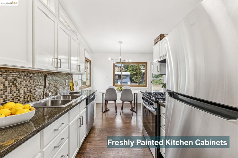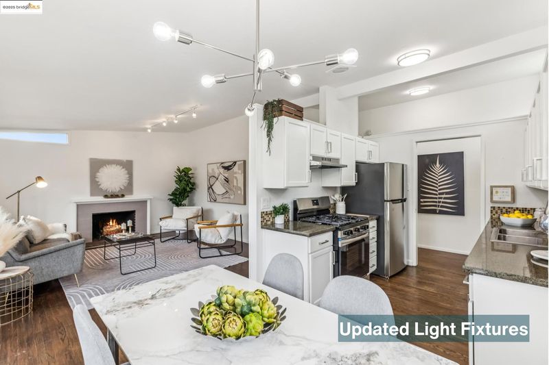 Welcome to 5619 Doremus Ave, a bright and versatile Lower Mira Vista home with mid-century charm! This 4BD/2BA blends timeless character with fresh updates: painted kitchen cabinets, new stainless-steel appliances, updated fixtures, and interior paint. Main level features an open floor plan with hardwood floors, spacious living room with fireplace, light-filled kitchen/dining, and seamless flow to the outdoor patio—ideal for entertaining. Three bedrooms and full bath complete this level. The lower level offers a huge living/family room, bedroom, bath, and separate entry—perfect as in-law, guest suite, or income rental. Front/back yards include new mulch, storage shed, and mature fig & lemon trees. A 2-car garage with internal access, shelving, indoor mailbox, and an extra-long driveway for 4–6 cars add convenience. Near Mira Vista Elementary/El Cerrito schools, shops, dining, trails, and I-80—peaceful living with city convenience!