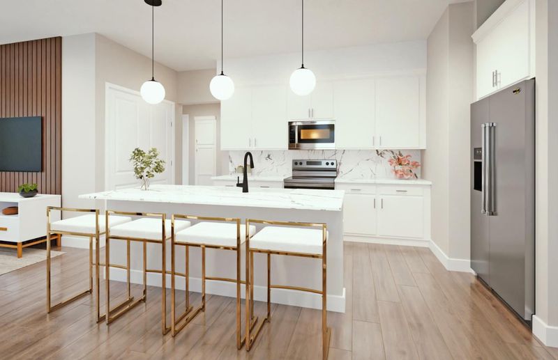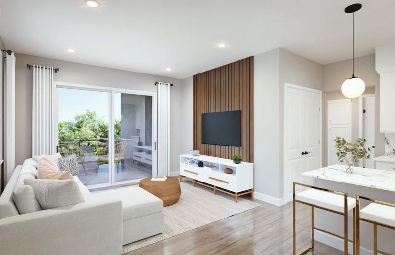 This spacious Plan B single-level flat is fully upgraded throughout. The gourmet kitchen with upgraded cabinets and countertops is perfect for entertaining. Enjoy an open floor plan and a one-of-a-kind lifestyle in this incredible corner unit. Photos are rendering not of actual home.
