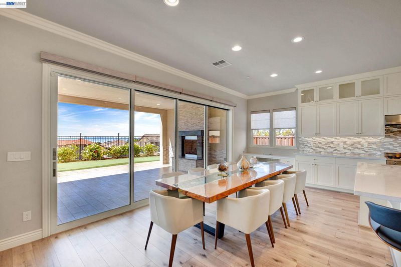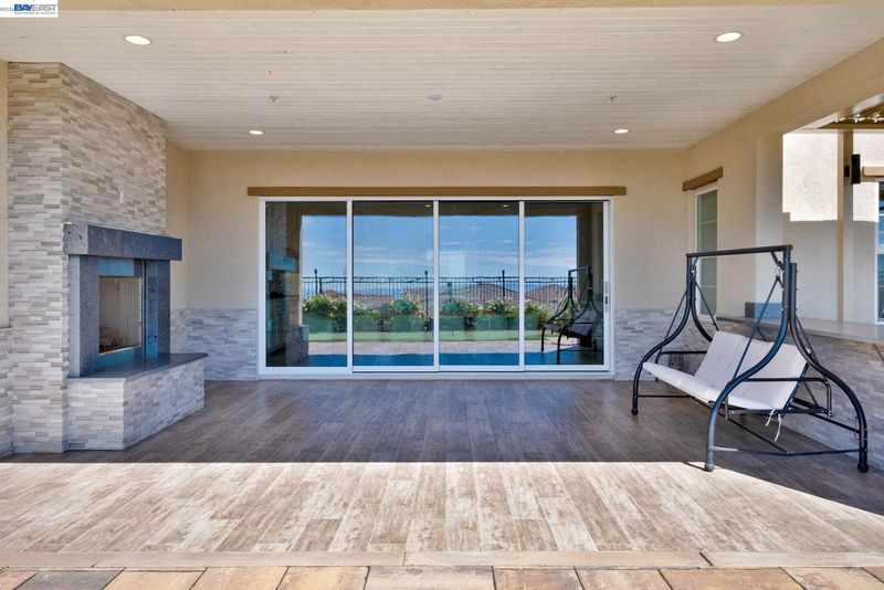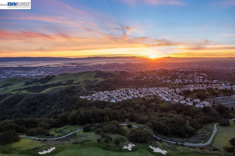 Exquisite home in prestigious Stonebrae Golf Club community, one of the most idyllic East Bay locations with spectacular views from San Francisco to South Bay. This luxury residence offers 5 bedrooms plus office, bonus room and 4.5 bathrooms, including a primary suite downstairs. The home boasts coffered ceilings, crown molding, and wainscoting. The formal dining room provides the ideal space for memorable dinners, while the open-concept kitchen and family room are ideal for gatherings. The gourmet kitchen is equipped with high-end appliances, a walk-in pantry, and a center island. A fully collapsible sliding door connects the kitchen to the outdoor California room with fireplace and STUNNING BAY VIEWS. Upstairs, the expansive master suite offers a private balcony that provides breathtaking vistas and features an expansive walk-in closet, dual vanities, oversized tub, and a sit-down vanity area. Additional highlights include hardwood flooring, upgraded sound system in the great room, and laundry room with cabinets and a sink. The private backyard offers a covered patio with built-in BBQ, stamped concrete walkway, a putting green & a bocce court. The guarded community has 24-hour security and optional country club memberships with access to a gym, golf, tennis courts and pool.