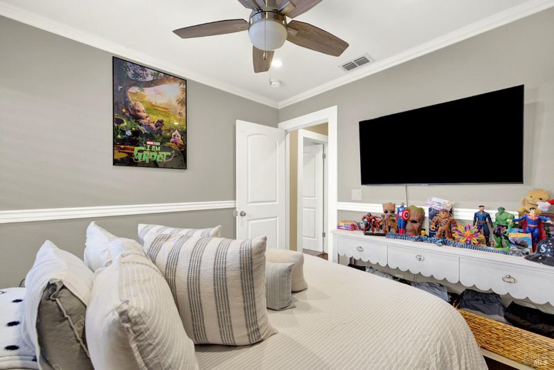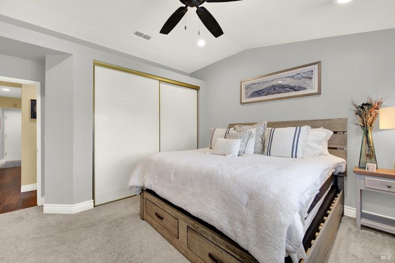 Pride of ownership shines throughout this beautiful 4-bedroom, 2-bath single-story ranch-style home in the desirable Southbrook subdivision of Cordelia. This move-in ready property blends comfort, style, and convenience, all within a community known for its highly rated schools. From the moment you arrive, you'll appreciate the beautifully landscaped front yard, inviting front porch that adds both curb appeal and character. Inside, you'll find 4 spacious bedrooms and 2 tastefully updated bathrooms. The remodeled kitchen offers a large island with abundant counter space, ample storage, and stainless-steel appliances perfect for both daily living and entertaining. Additional highlights include updated lighting throughout, designer paint and custom plantation shutters that bring a touch of elegance. Step outside to a low-maintenance backyard featuring a stamped concrete patio, and a custom wood pergola ideal for evening relaxation or weekend BBQs. All the details have already been taken care of, this home is truly move-in ready. Don't miss your chance to make it yours!