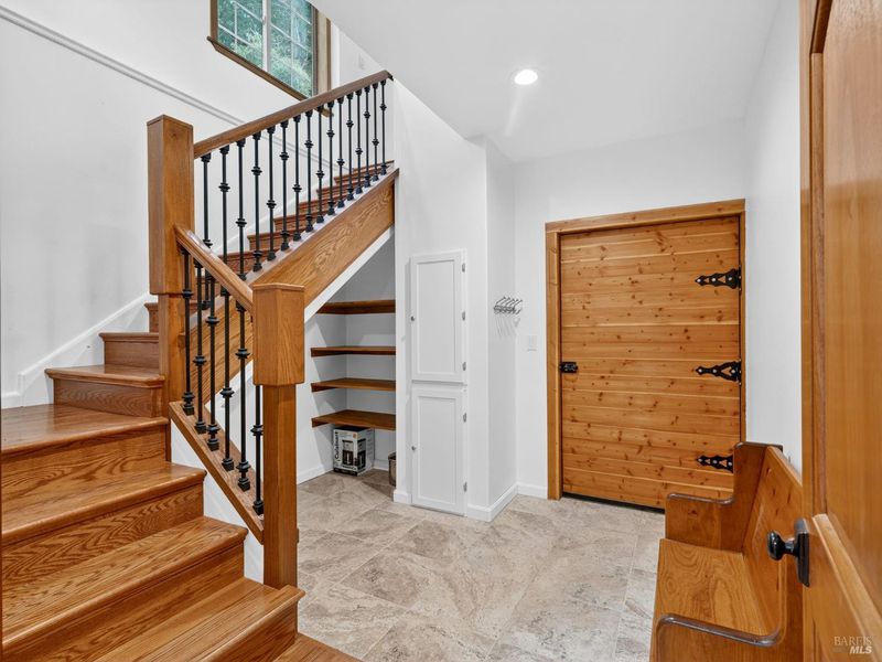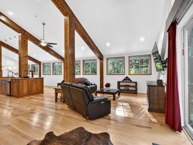 n impressive Barndominium with 3 bedrooms, 2.5 baths, 2,700+/- sq.ft. of living space, and a spacious 1,870 +/- sq.ft. workshop/garage. The quality of the build exceeds that of many homes built today with 2X6 construction and over-engineering everywhere you look. The home features a reverse floorplan, with the main living area and primary suite upstairs, and two bedrooms, a full bath, and a laundry room downstairs. The spacious main living area has vaulted ceilings, open wood beams, solid wood hickory floors, skylights and many windows with a nice deck for enjoying the outdoors. The kitchen features a massive 18' 5' long island with custom lighting, an 8-burner gas cooktop with infrared lights for keeping food warm, double ovens, a 48' refrigerator, extra-tall hickory cabinets, a 42' farmhouse sink, a walk-in pantry, and even a spot for a dumbwaiter for groceries or laundry. This gorgeous 22+/- acre property has 5-acre zoning, potentially 2 acres with approval, with redwood groves interspersed throughout and a year-round creek. The property is mostly level and usable with trails for a peaceful walk or bike ride to enjoy the trees and local wildlife. There is potential for a multiple property split and for adding additional homes or an ADU. There are multiple RV hookups with a bathhouse nearby for guests to visit. The 500-gallon water tank provides gravity flow from the high-producing well. The house was built with future expansion in mind; there is framing from the downstairs bedroom to expand the living space into the workshop, there is also framing for a hall closet, and there is the possibility to add a second deck to the east of the kitchen. The finished workshop also has areas that can be enclosed for an artist studio, gym, or home office. The possibilities are endless!