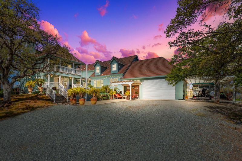 Luxury Estate with Unmatched 360° Views!! Perched atop a private 3.4± acre ridge, this exceptional 4,749± sq. ft. residence offers panoramic views of Lake Don Pedro and the mountains-sunrise to sunset. A perfect blend of upscale design and country charm, the home features five spacious bedrooms, including four ensuites and an office. A luxurious primary suite with a private deck overlooking the mountains. In total: four full bathrooms and one half-bath. Enjoy seamless indoor-outdoor living with expansive patios, your own private campground, a horse arena, two-acre fenced pasture, and tack room. After a day at nearby Lake Don Pedro or Lake McClure, rinse off in the outdoor shower and store your boat under the dedicated covered area. Both boat launch ramps are only 10 minutes away. The oversized 2-car garage offers a workshop, 12-foot ceilings and abundant storage space. Tons of extra parking on the property. Fire-safe with a cement tile roof, dual street access, and an on-site hydrant. Located just minutes from the HOA clubhouse, where you'll enjoy access to a pool, fitness center, and more. Only 1 hour to Yosemite and 2.5 hours to the Bay Area, this one-of-a-kind property is ideal as a full-time residence or a high-end retreat. A rare offering, schedule your private tour today