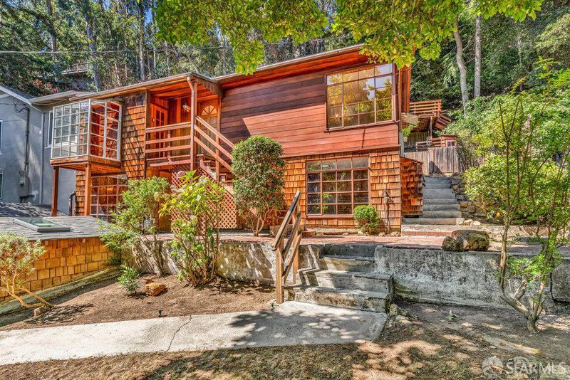 Montclair Hills vintage 2BD/1.5BA cottage w/canyon views & sizeable potential. Perched on an upslope 9500 sf lot, this 1926 home includes a 1980s primary suite addition that may bring the home to approximately 1400 sf (buyers to verify). Located on a quiet cul-de-sac just off Thornhill Dr., near Thornhill Elem & the Montclair Swim Club, this multi-level home offers original charm, natural light, & abundant opportunity for its next owner's vision. Main lvl features LR w/ open beam ceilings, wood finishes, wood-burning stove, & large windows framing leafy hillside views. DR flows easily for entertaining. Vintage kitchen offers ample cabinets & counter space, ready for updates or enjoyed as-is. A versatile bonus rm is ideal for office, den, or studio. Upper lvl primary suite includes a large BR, soaking tub, & direct access to wraparound deck w/serene views - a private retreat in the trees. One lvl below, a 2nd BR or office pairs w/ adjoining powder rm. Basement offers finished flex space w/ wood paneling, brick details, bonus BA, & options for hobbies, media, or guests. Outdoor living includes multiple decks, terraced patios, & garden pathways. Convenient to Montclair Village, parks, schools, & Hwys 13/24.