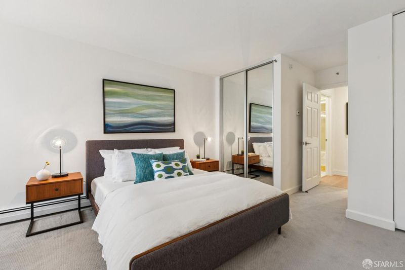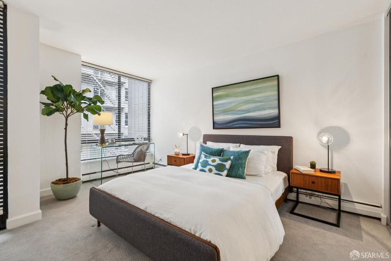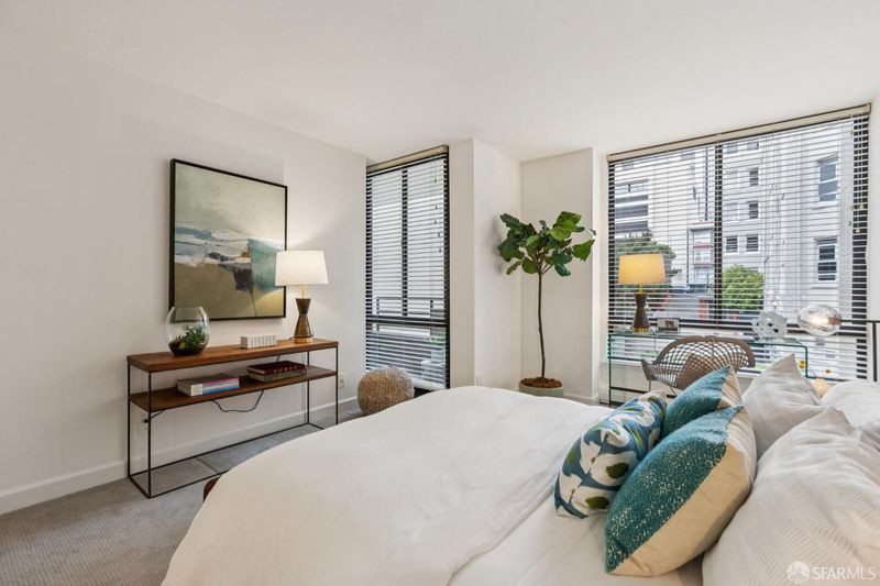 Located in the heart of a premier urban neighborhood, Unit 512 is a bright, spacious and beautifully updated 1-bedroom, 1-bath condominium offering an open floor plan and an exclusive use balcony accessed from the living room. Peaceful, textured views overlook the pool and landscaped courtyard from every room. Thoughtfully updated with care and attention to detail, the modern kitchen features quartz countertops, stainless steel appliances, a breakfast bar, and tile flooring. The bright, updated bathroom includes a quartz-topped vanity and designer tile flooring. Floor-to-ceiling windows in the living room fill the home with natural light, while six closets provide exceptional storage throughout. Set within a full-service elevator building, amenities include one assigned parking space, common EV charging, a 24/7 lobby attendant, fitness center, landscaped plaza with seasonal outdoor swimming pool, and a large, updated common laundry room (credit card operated). Additional conveniences include onsite professional property management, broadband, internet, heat, and more. Close to FiDi, Union Square, Huntington Park, and an abundance of shopping and dining options, this residence offers effortless city living at its best.