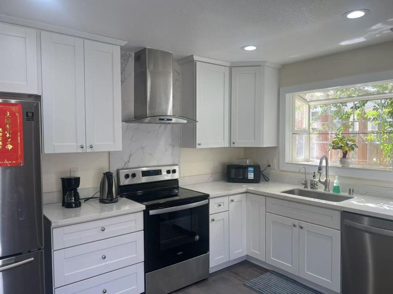 - Countertop - Quartz, Dishwasher, Exhaust Fan, Garbage Disposal, Oven Range - Electric