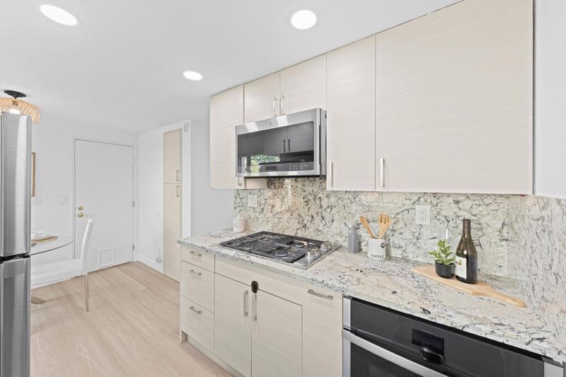 - Cooktop - Gas, Countertop - Granite, Dishwasher, Exhaust Fan, Garbage Disposal, Hookups - Gas, Microwave, Oven - Gas, Refrigerator