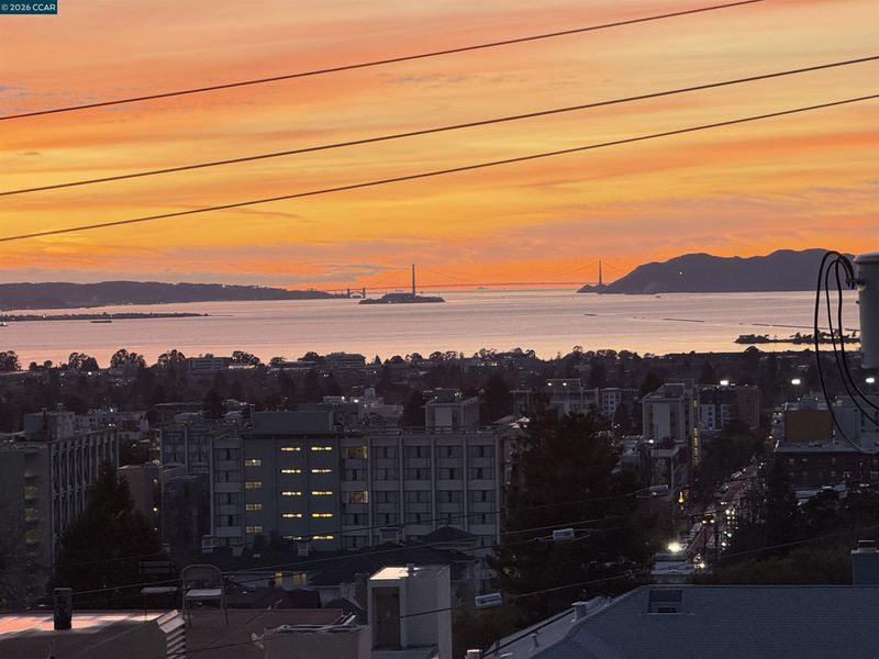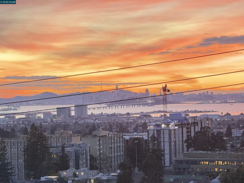 Penthouse Living with Unrivaled Panoramic Bay Views! The pinnacle of Berkeley off campus living in this stunning top-floor corner condo. Boasting unobstructed vistas of the world famous Golden Gate Bridge, wake up every day to sweeping views of glittering water on the San Francisco Bay & come home every night to a different sunset spanning the Marin headlands to Peninsula. Living in a postcard! The private deeded patio affords you excellent options for dining al fresco or star gazing. Open concept floorplan with a seamless flow from the kitchen to the living area, fabulous for entertaining while keeping the astounding views center stage. Upgrades feature high-end appliances like built in Sub-Zero fridge, an elegant Japanese toilet (bidet), in-unit laundry, elevator building. Premier location, perched right by the UC Berkeley Stadium—a dream for Cal fans! Steps from the International House, Telegraph Ave shopping, historic Claremont Resort & the #1 ranked Public university in USA: UC Berkeley. 1 dedicated parking space in gated garage. Ideal starter home, pieds à terre or downsizing. Undeniable world class views this penthouse is unmatched.