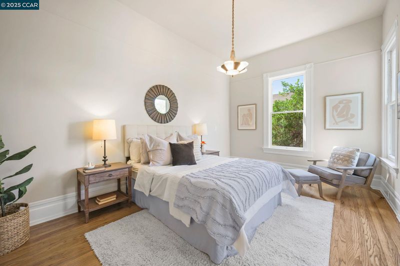 Shining bright like a polished jewel, this classic Victorian has been remodeled and restored for the next owner enjoy to the fullest. With dramatic 10 foot+ ceilings, the home is drenched in natural light. The main floor has been redesigned for modern living, with a primary bedroom with en-suite bathroom. Architecture lovers will enjoy the detailed molding, ornate door handles, vintage light fixtures and elaborate facade. While many of the original details are intact, the home has had major improvements, including bathroom remodels, kitchen updates, refinished flooring, fresh paint, re-built foundation, seismic bolting, and drainage. Electrical and plumbing components have been modernized, as well as the home’s radiant heating system. The updated kitchen features quartz counters, new fridge, new gas range, and large windows for plentiful natural light. The lower studio unit adds additional living space or could be used as an entirely separate unit. The workroom has been finished out with laundry area and additional office or storage space. The flat, .15 acre lot feels like an urban oasis, with lush green lawn, gardens, mature fruit trees, succulents and jasmine. You can’t beat this South Berkeley location with a 93 walk score and easy access to BART and local freeways.