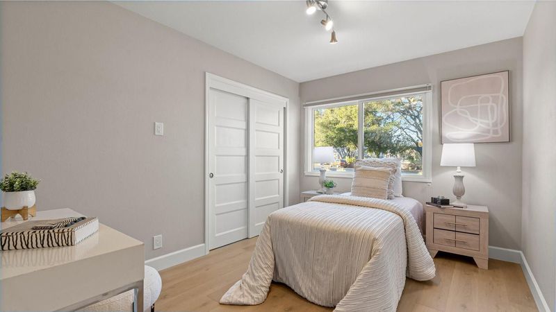 Welcome to this gorgeous single-story home nestled on a large lot in a quiet Los Altos neighborhood. Impeccably renovated throughout with stunning designer touches completed in 2023. Breathtaking kitchen with dream long breakfast bar island, commercial-grade appliances, including a Wolf 8-burner gas range with double-oven and Sub-Zero refrigerator/freezer. Beautiful views of the yard from the elegant living and dining spaces. Wonderfully appointed bathrooms. Spacious bedrooms. Updated plumbing and electrical. Double pane Marvin windows and central A/C. Owned Solar. Dream primary suite with fantastic walk-in closet and spectacular ensuite bathroom, including a Toto Neorest toilet. Private backyard with dining patio, deck, lawn and space for kids or dogs to play. Attached 2 car garage with oversized driveway. Exceptional family-friendly, quiet and highly walkable Los Altos neighborhood with free summer concerts in the park. Walk to parks, schools, restaurants and shops. Convenient commute location. World-renowned Cupertino schools: Homestead High, Cupertino Middle, and Montclaire Elementary.