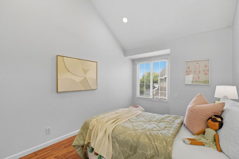 Welcome to this updated free-standing townhome in the highly sought-after Blossom Tree community. The spacious open-concept living room features soaring cathedral ceilings and a cozy fireplace, creating the perfect space for relaxing! The remodeled kitchen boasts elegant coffered ceilings, granite counters, stainless steel appliances, ample storage, and updated fixtures. An adjacent dining area includes a convenient breakfast bar and opens to a landscaped backyard with pavers, plantings, and a grass area. Upstairs, three generously sized bedrooms offer abundant natural light, ample closet space, and engineered hardwood flooring. The primary suite is a private retreat with vaulted ceilings and a large bathroom featuring dual sinks, a spacious shower, and a skylight. All bathrooms have been tastefully updated with granite countertops, modern tile flooring, and contemporary light fixtures. Additional highlights include central A/C, an in-unit washer and dryer, a two-car attached garage, and a built-in security camera system for peace of mind. This home is served by excellent schools and is conveniently located just minutes from shopping, dining, and Oakridge Mall. With easy access to Highways 85 and 87, as well as the VTA Light Rail, commuting throughout the Bay Area is a breeze!