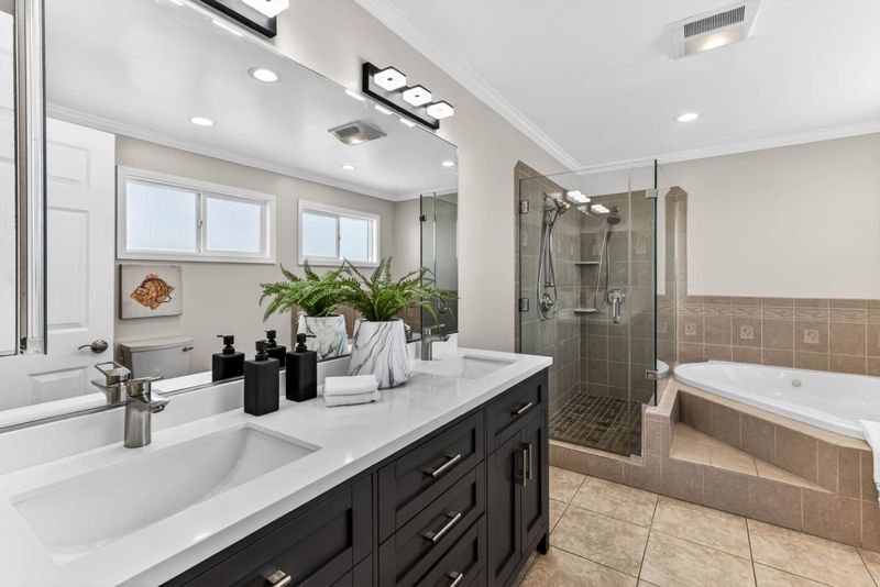 - Double Sinks, Primary - Stall Shower(s), Primary - Tub with Jets, Shower over Tub - 1, Tile