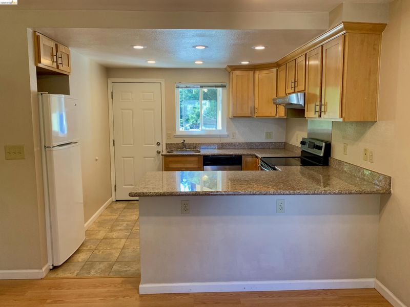 - Dishwasher, Electric Range, Free-Standing Range, Refrigerator, Breakfast Bar, Stone Counters, Electric Range/Cooktop, Disposal, Range/Oven Free Standing