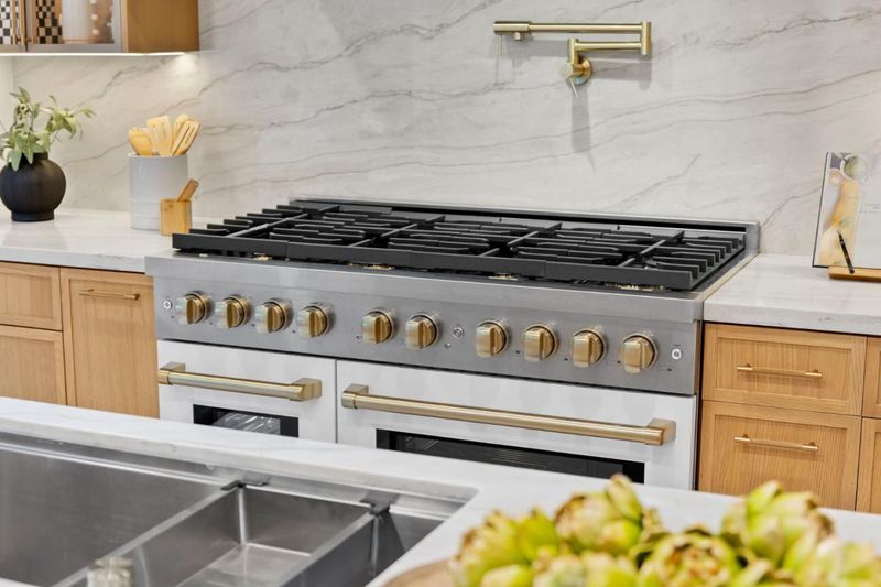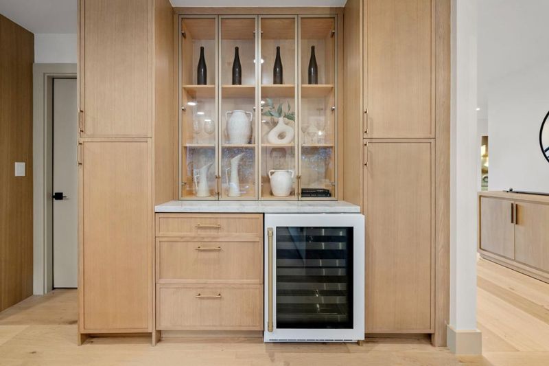 - Countertop - Quartz, Countertop - Stone, Dishwasher, Hood Over Range, Island, Island with Sink, Microwave, Oven Range - Built-In, Gas, Wine Refrigerator