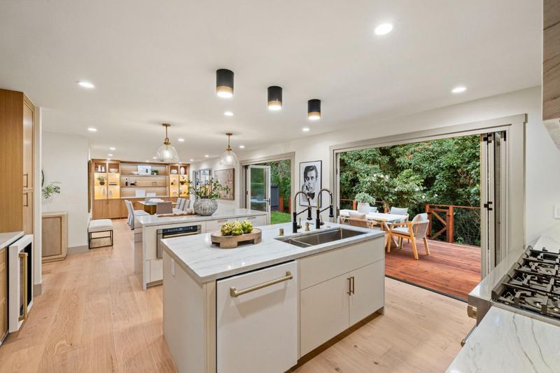 Fully reimagined 4BD/3BA Millbrae home with approx. 2,272 sq ft of refined living space. This light-filled residence features an open-concept layout, new wood flooring, new windows and doors throughout, and a brand-new designer kitchen with two islands, custom cabinetry, and luxury ZLINE appliances. Oversized La Cantina bi-fold doors connect the kitchen and dining area to a stunning redwood deck, creating seamless indoor-outdoor living.The private backyard backs to a serene creek, offering a rare wooded retreat. Recent exterior upgrades include a new front porch with redwood details, new walkways and driveway, fresh sod, and a new side fence with privacy lattice.Major system upgrades include updated electrical with new panel, updated plumbing as needed, new sewer lateral, new water heater, new fireplace damper, and a new dual-zone HVAC system. All bathrooms have been fully rebuilt with spa-inspired finishes, including a primary suite with walk-in closet and soaking tub. Conveniently located near top-rated schools, transit, and all that Millbrae has to offer.