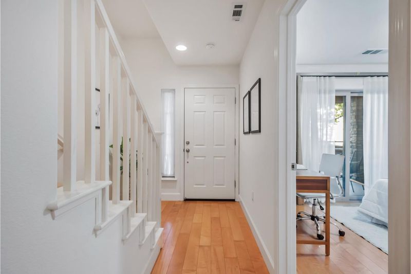 Beautiful Newer 3 Bed, 3.5 Bath Townhouse Near Downtown This beautiful townhouse is 0.5 miles from downtown Menlo Park and the Stanford Shopping Center. Even downtown Palo Alto is only about 0.75 miles away. An incredible number of cafes and shops are a short walk away. Nearby Nealon Park puts outdoor recreation a block away. If you like bicycling, nearby Sand Hill Rd is a favorite route to the Santa Cruz Mountains or to the Portola Valley - Woodside loop. The Allied Arts Guild hosts community events and numerous art studios and shops. Nearby Stanford University hosts numerous public events and you don't need a car to reach them, a bike or walking will be fine. This home has both a covered porch and a balcony where you can enjoy reading and refreshments outdoors. The modern kitchen has stainless steel appliances, light colored stone counter tops, high subway tile backsplash, rich stained wood cabinets and a wood plank floor, forming a delightful place to prepare meals. The kitchen is open to the dining room and to the living room beyond. It is a great floor plan for either daily family life or entertaining. All three bedrooms have their own bath en-suite. The bedroom on the ground floor could be a great guest room, an office, or a recreation room.