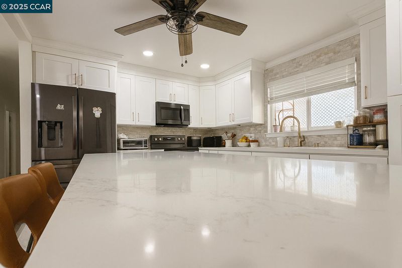 - Microwave, Stone Counters, Kitchen Island, Pantry