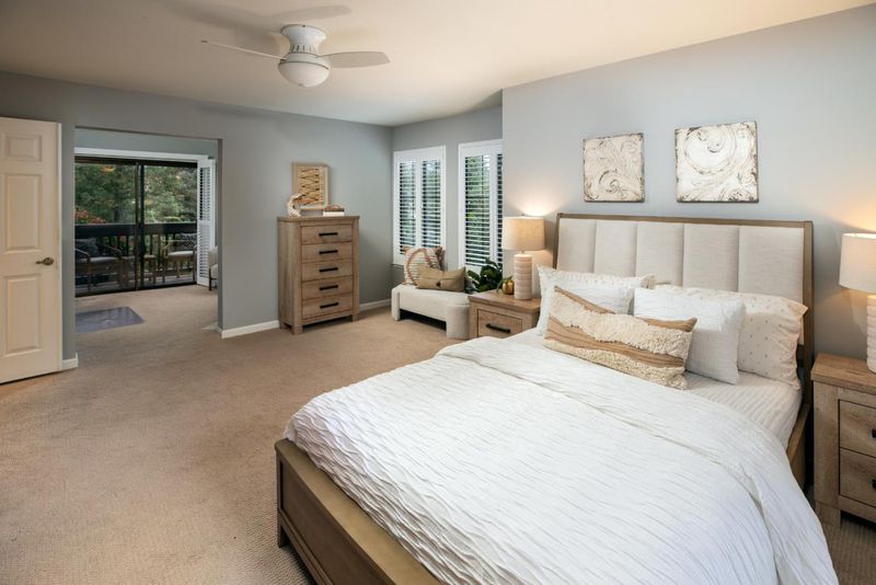 One of the best locations and views of all the 62 Homes in The Almaden Villas! All three balconies, yes, three balconies have different views and feel. You will be in the upper hill area of the rare Almaden Villas where you will be looking at the vast views of the Almaden Hills & Mount Umunhum. The lovely entry area welcomes all into an open, bright living area with 15-foot ceilings. These views continue towards a large south-facing balcony, large enough for many fun get-togethers or some quaint, quieter times. The attractive remodeled kitchen is logically located between the media area and the dining room, which is very efficient for entertaining. On its own private floor is the primary suite, with a relaxing north-facing patio, a fireplace, an attached flex-space-office, a walk-in closet, and a luxurious full bathroom with a deep soaking tub. The third sunny balcony of the second bedroom looks up to the gorgeous Sierra Azul Open Preserve. Sharing a full double-sink bathroom, this second bedroom and a large third bedroom offer almost 2400 square feet in one beautiful home. The Community building, the two distinct pool areas, the two tennis courts, the two sauna rooms, the racquetball court, and the covered jacuzzi area can all be yours at the Almaden Villas!