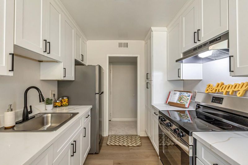 Step into this beautifully renovated top floor 2-bedroom, 1-bathroom condo in the heart of Mountain View. Located in a secure building, Unit 307 has been updated from top to bottom, featuring brand-new kitchen and appliances, baseboards, freshly painted walls and ceilings, LVP floors and new carpet, an remodeled bathroom vanity and modern fixtures throughout creating a bright, move-in-ready space. Inside, you'll find 1,008 square feet of thoughtfully designed living filled with natural light, enhanced by energy-efficient Low-E windows. The spacious living room flows into a dedicated dining area and opens to a peaceful balcony, ideal for morning coffee or relaxing evenings. The kitchen boasts sleek cabinetry, quartz countertops, a refrigerator and a modern electric range. Residents enjoy community amenities including a sparkling in-ground pool, convenient laundry, and gated, assigned parking. The HOA fee covers all major utilities!! Electricity, sewer, and water. Located within the acclaimed Los Altos Elementary and Mountain View / Los Altos High School Districts, this condo combines modern comfort with access to top-tier education. Don't miss this turnkey opportunity in a prime Silicon Valley location!