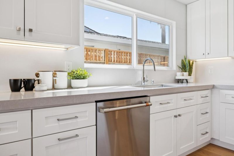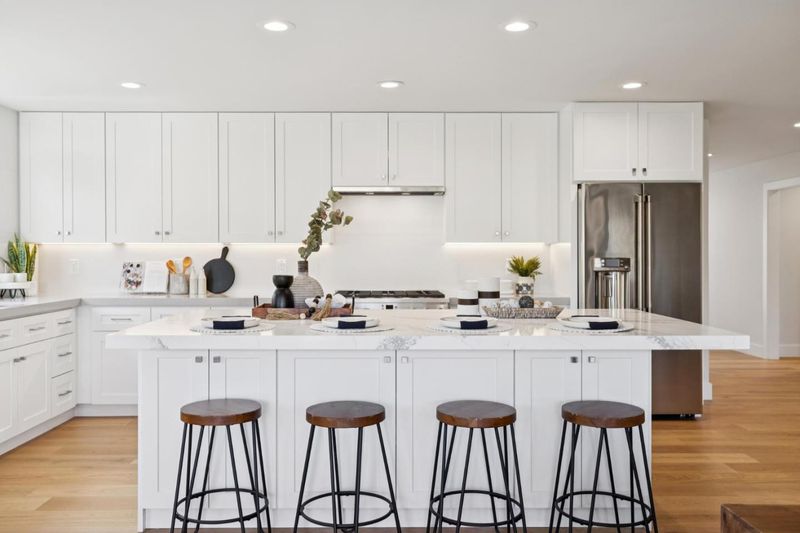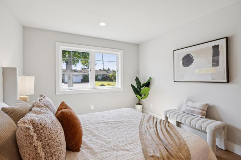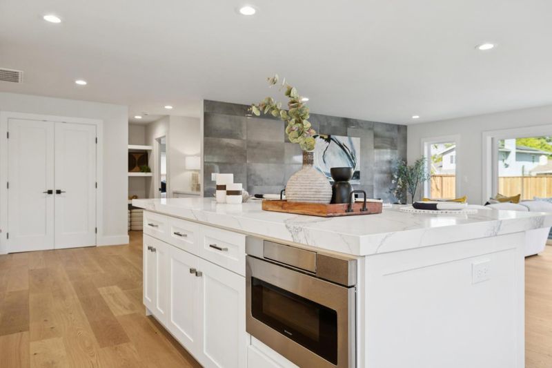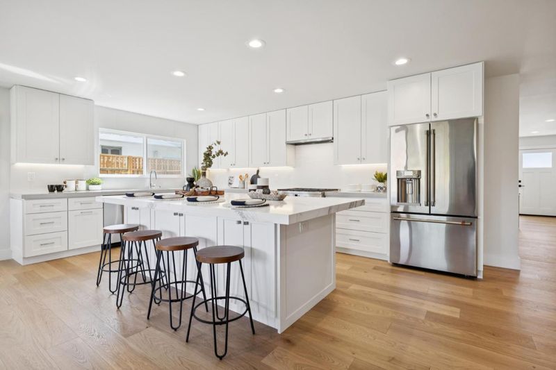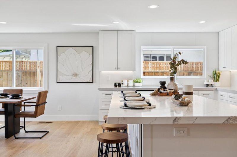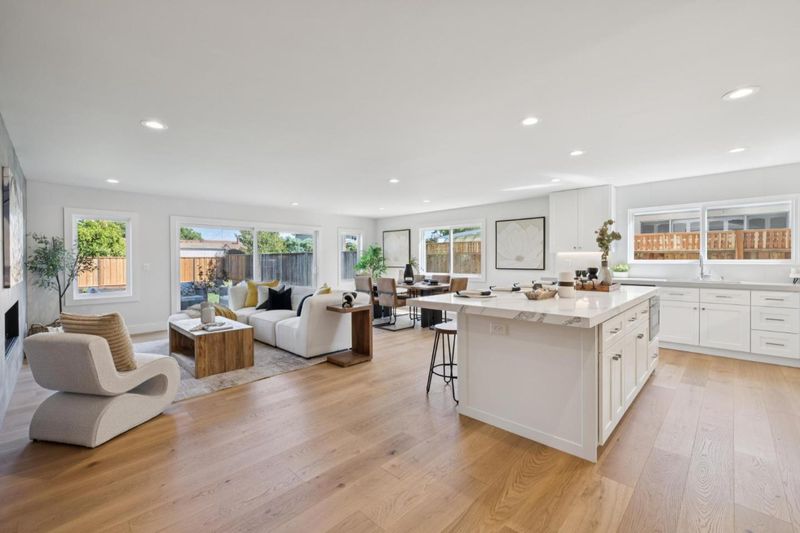 Like New! This beautifully rebuilt and expanded single-story home is tucked within the highly desirable Cambrian community. Light-filled, open floor plan showcases brushed white oak hardwood flooring throughout and a seamless great room layout combining living, dining & kitchen spaces. Living area features a sleek, tile-surround gas fireplace, while the Chef's kitchen impresses w/ quartz countertops, semi-custom cabinetry with soft-close drawers and doors, under-cabinet lighting, a gas range, stainless steel appliances, and a spacious center island perfect for entertaining or casual dining. Private primary suite offers a generous walk-in closet and spa-inspired bath with dual vanity and oversized frameless glass shower. Off a separate wing, you'll find 3 additional bedrooms, a hall bath with dual vanities, & a convenient laundry area. Large landscaped backyard with stamped concrete patio creates the ideal setting for outdoor living and gatherings. Other features include designer fixtures, Milgard windows, Nest thermostat and doorbell, tankless water heater, prepped for electric car charger in garage, new hardscape and landscaping, and much more. Close proximity to top-rated schools, parks, shopping, dining, and easy access to Hwy 85 for a quick commute anywhere in Silicon Valley.