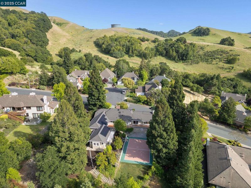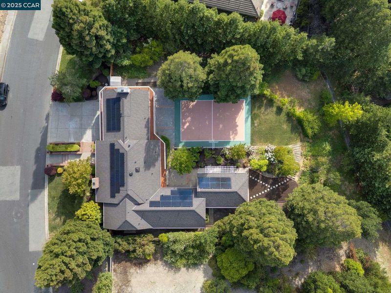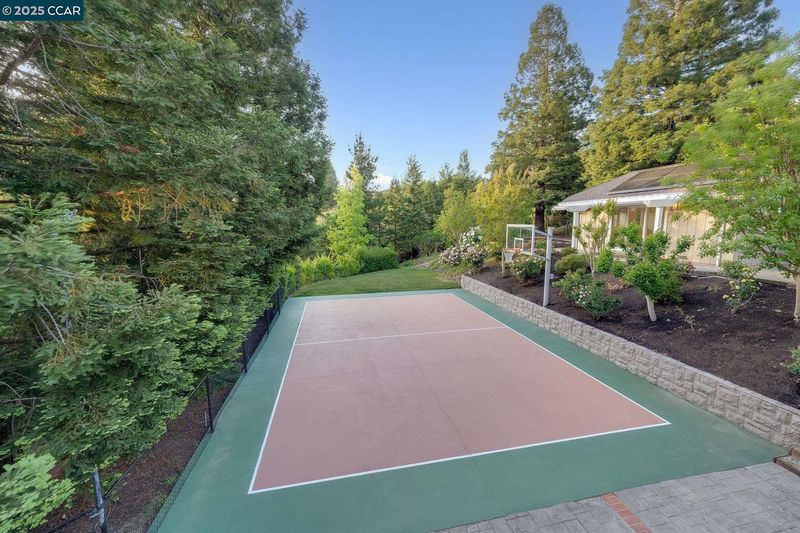 Gorgeous Sanders Ranch home on quiet street! 4 bedrooms plus an office, 2.5 baths in excellent condition on over 1/2 acre lot. Step into the living room with high ceilings, recessed lighting and fireplace. Formal dining room features hardwood floors and beautiful view. Kitchen comes complete with stainless steel appliances including gas stove. Stunning family room with high ceilings, hardwood floors, and fireplace, is light and bright with multiple windows. Primary suite has huge walk-in closet, sitting area, separate tub and shower and overlooks a garden full of blooming flowers. Originally built for a Golden State Warrior there is a basketball court in the backyard which could also be used as a pickleball or volleyball court. Imagine the outdoor fun the kids or you can have! Three car garage with EV charger, storage cabinets and room for hobbies. Owned solar system, large laundry room, tankless hot water heater, fresh interior paint. Minutes to top rated Moraga schools and shopping!