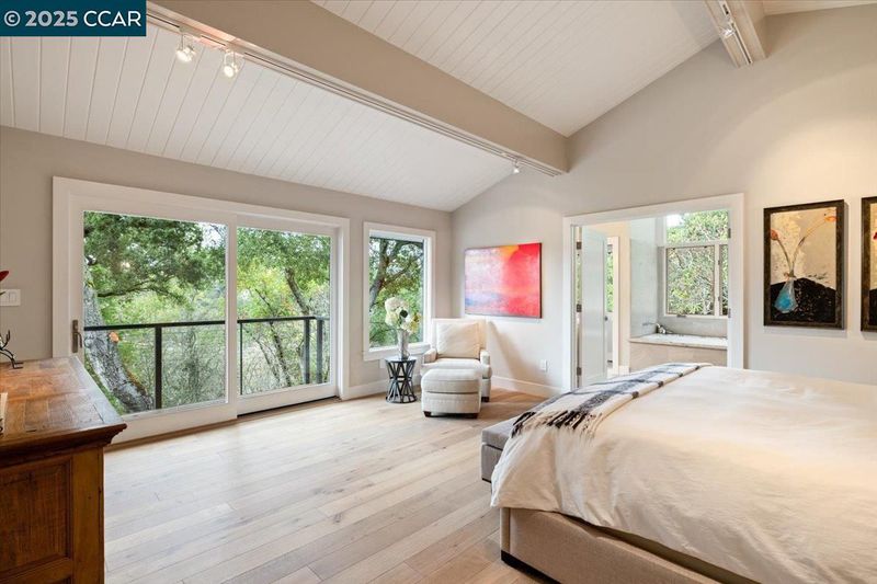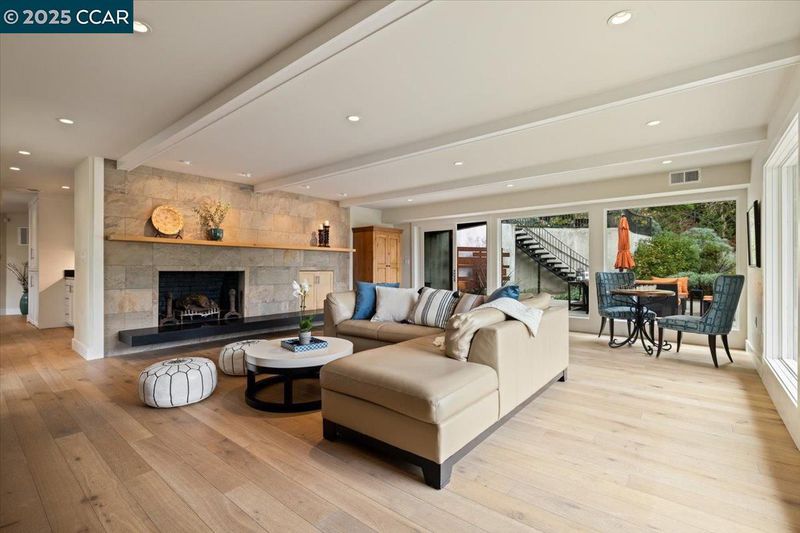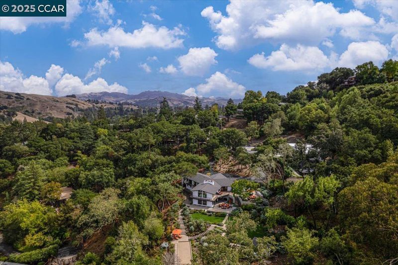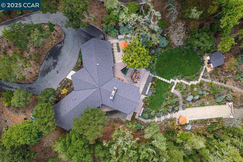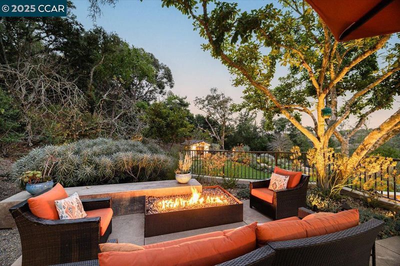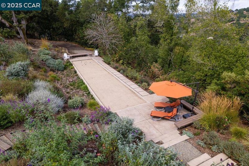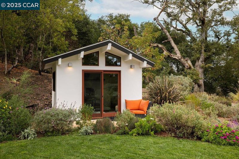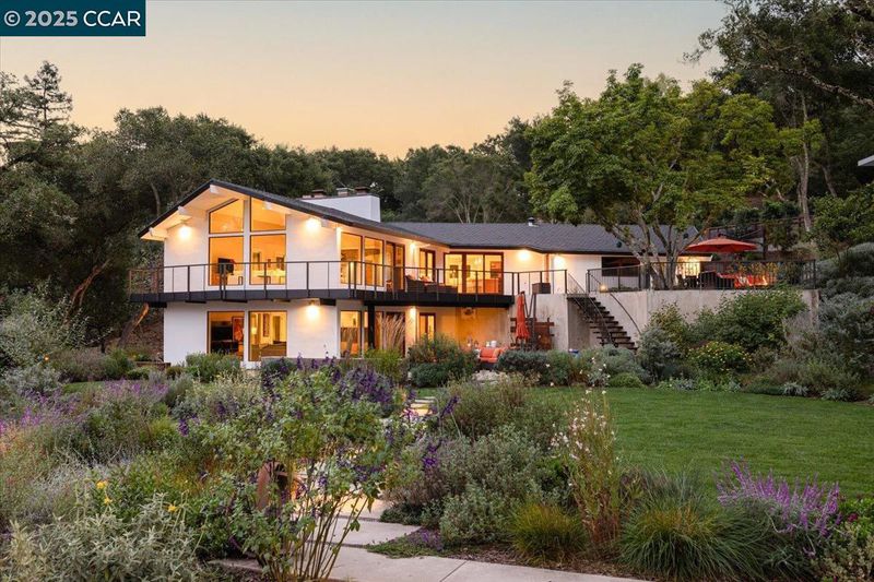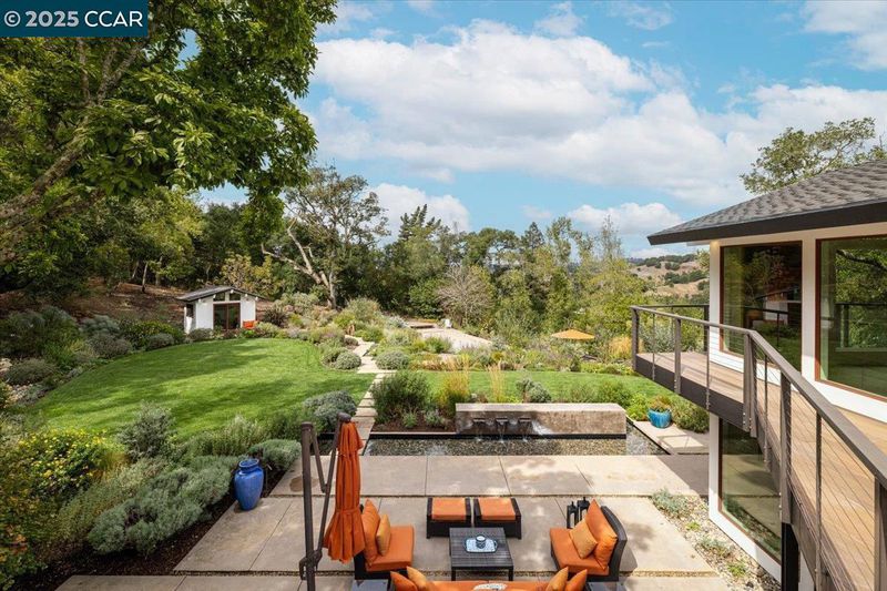 Mid-century modern meets contemporary with this stunning 5 bedroom, 4 bathroom home complete with floor-to-ceiling windows and open floor-plan. The 1.3 acre estate features an oversized-lawn, bocce court, modern fountain, outdoor kitchen, firepit and a mini-Filoli Garden with meandering paths filled with plants that bloom year-round! The remodeled kitchen has cathedral ceilings, a walk-in pantry, large island, Sub-Zero refrigerator and separate full-sized Sub-Zero freezer. Two bedrooms and bathrooms are on the main level (including primary suite), with 3 more bedrooms and a family room downstairs. There's even a separate air-conditioned studio in the yard. The 2-car garage is oversized with several other areas to park on the property at the end of a private cul-de-sac.