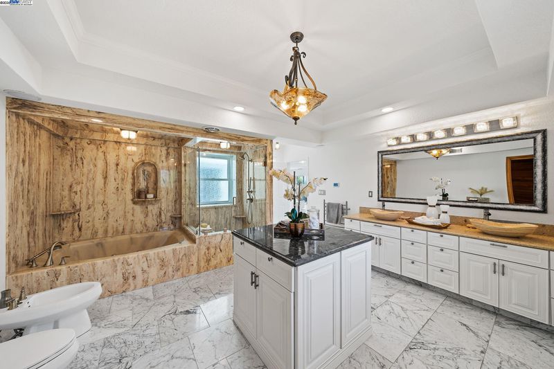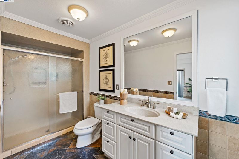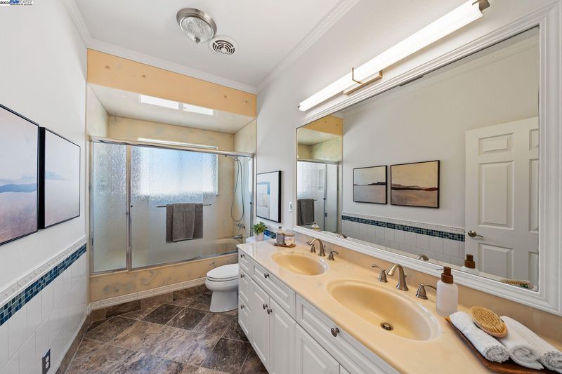 - Shower Over Tub, Solid Surface, Updated Baths, Double Vanity, Granite, Window