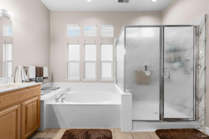 - Double Sinks, Shower Stall(s), Tub, Walk-In Closet, Window