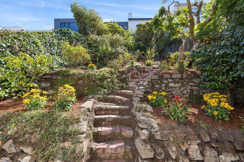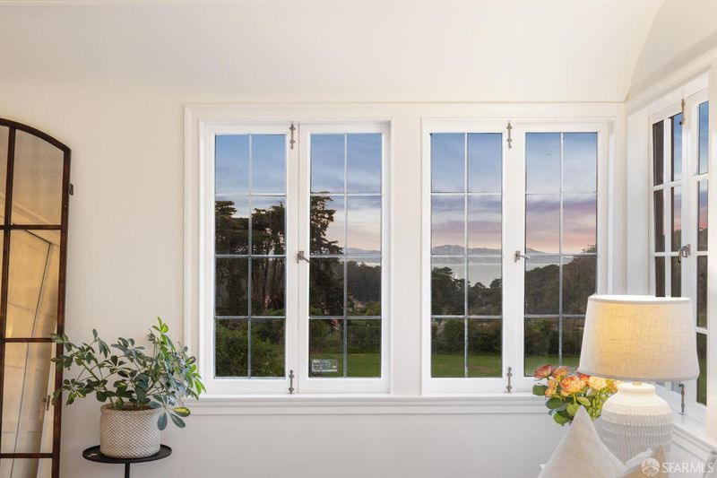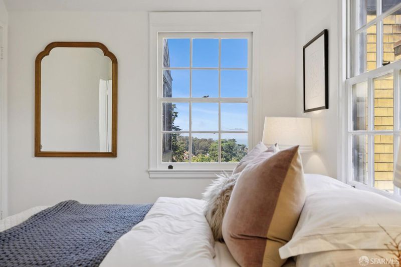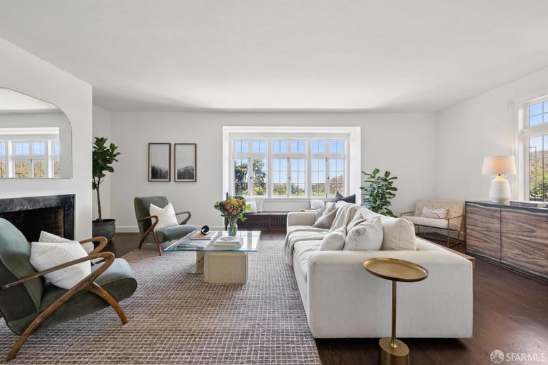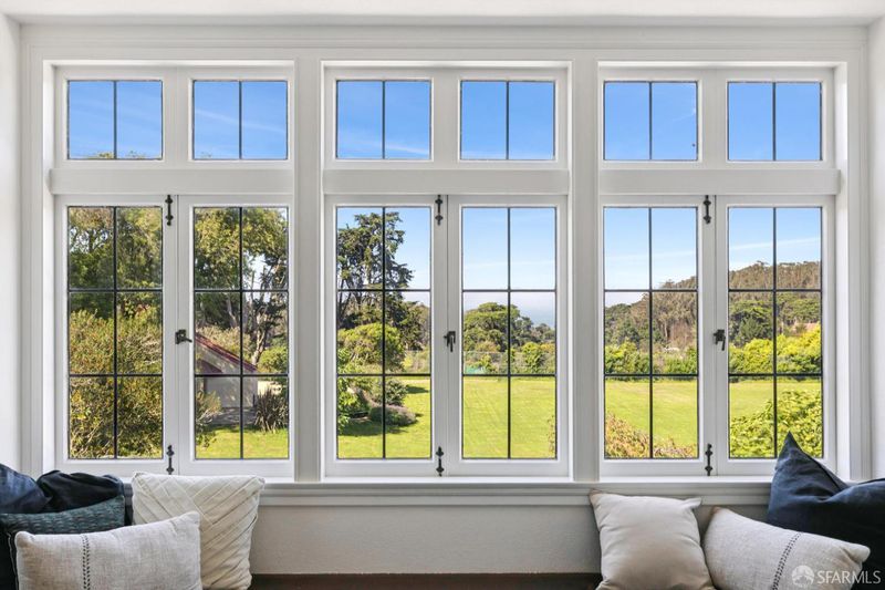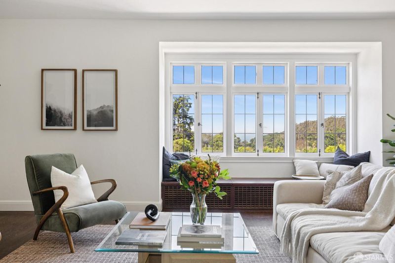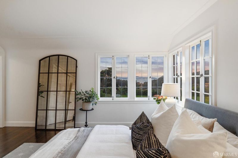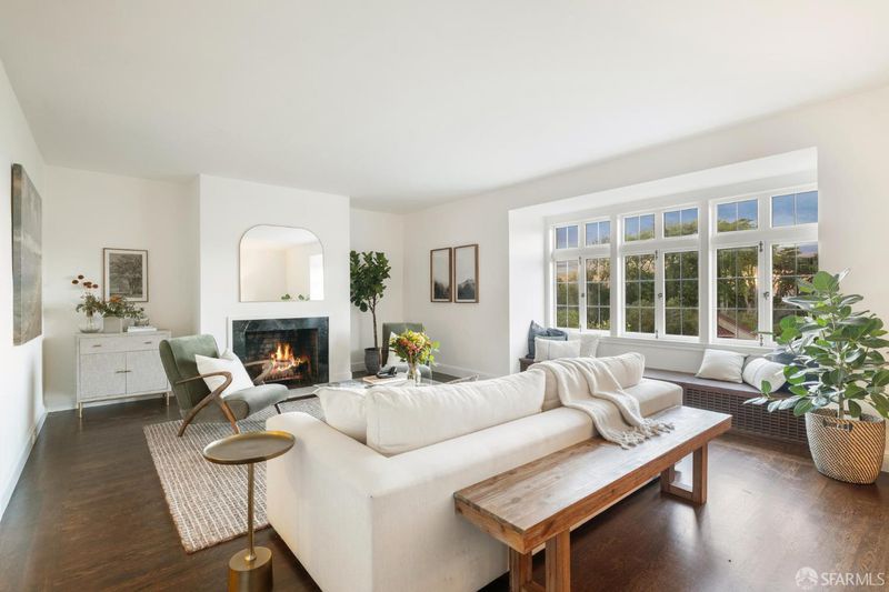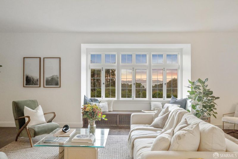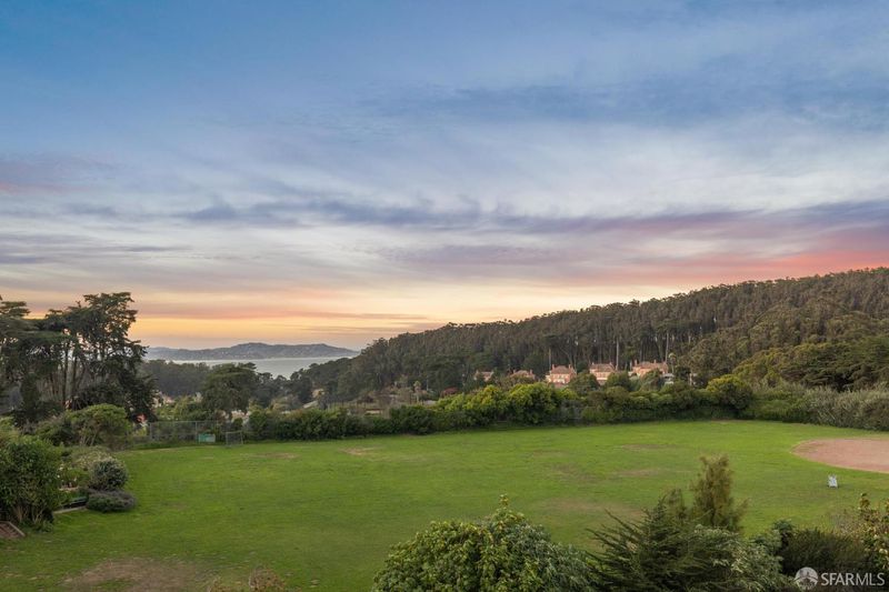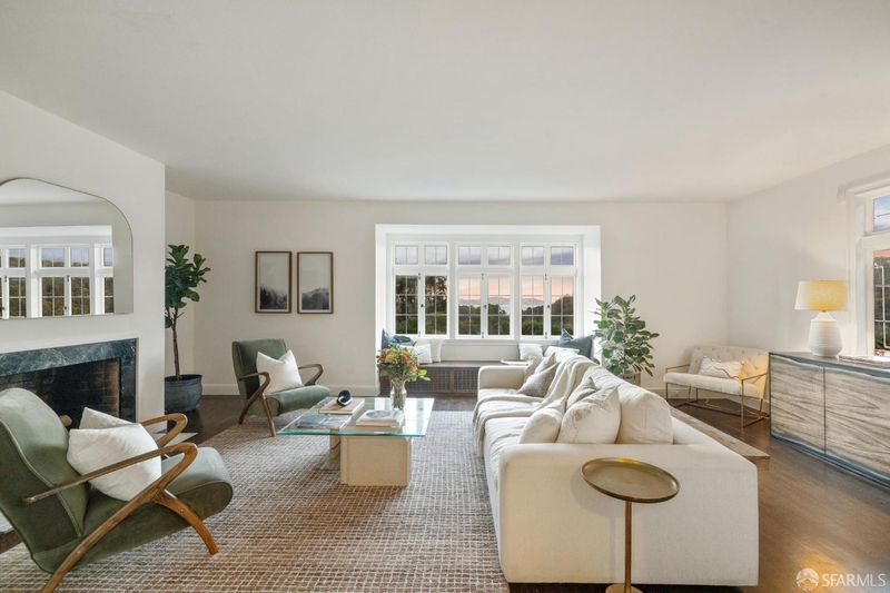 A rare offering on the Presidio Wall, this distinguished home enjoys a premier location directly across from the iconic Presidio Wall Playground and miles of scenic Presidio trails. With rich architectural character and enduring charm, the home is designed for both comfort and grandeur. The gracious living room features high ceilings, gleaming hardwood floors, and a cozy window seat framing captivating views of the Bay, Presidio, and Park. The spacious dining room, exquisitely detailed, opens to the mature garden, while the kitchen offers inspiring outlooks, butler's pantry, and exciting potential for expansion. A powder room completes this level. Upstairs, there are four generously sized bedrooms and two full baths; the front-facing rooms, including the primary suite, capture sweeping views of the Bay, Presidio, and Park, while the rear bedrooms overlook the garden, one with a quaint bridge leading to the upper patio. Flowering trees and roses create a serene outdoor retreat in the beautifully terraced garden. The lower level offers a two-car garage and ample storage. Set in one of San Francisco's most prestigious neighborhoods, the home is surrounded by natural beauty with effortless access to recreation, top-rated schools, and the refined shops and dining of Sacramento Street.