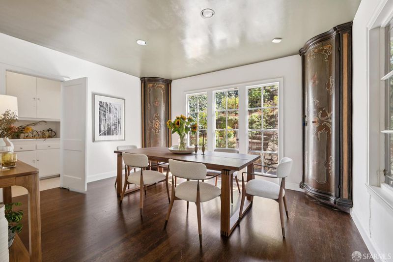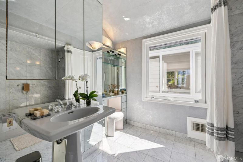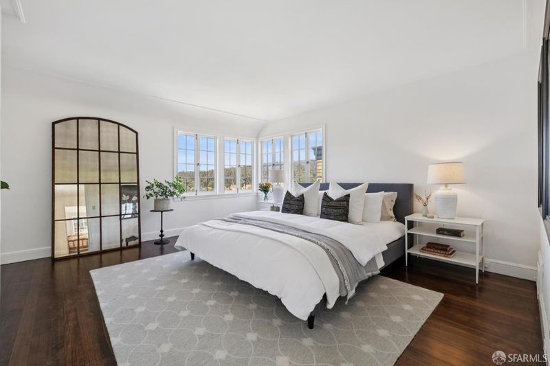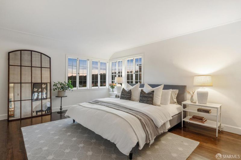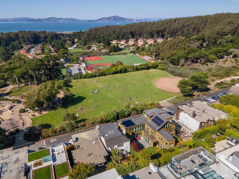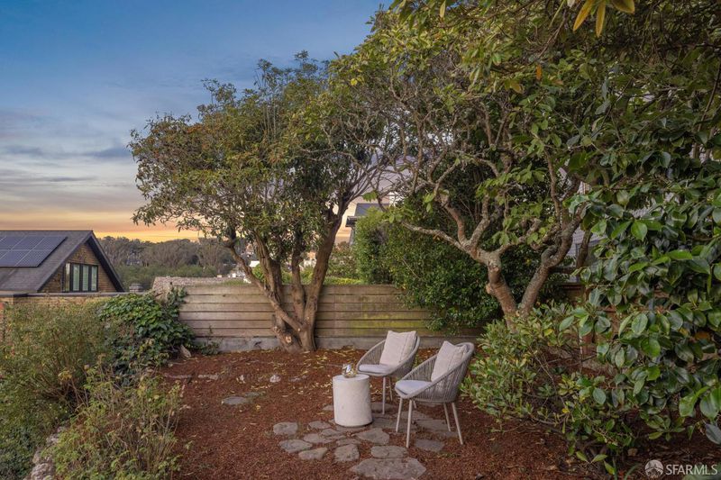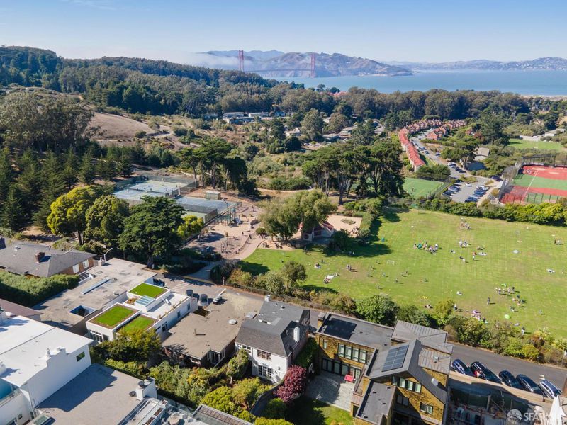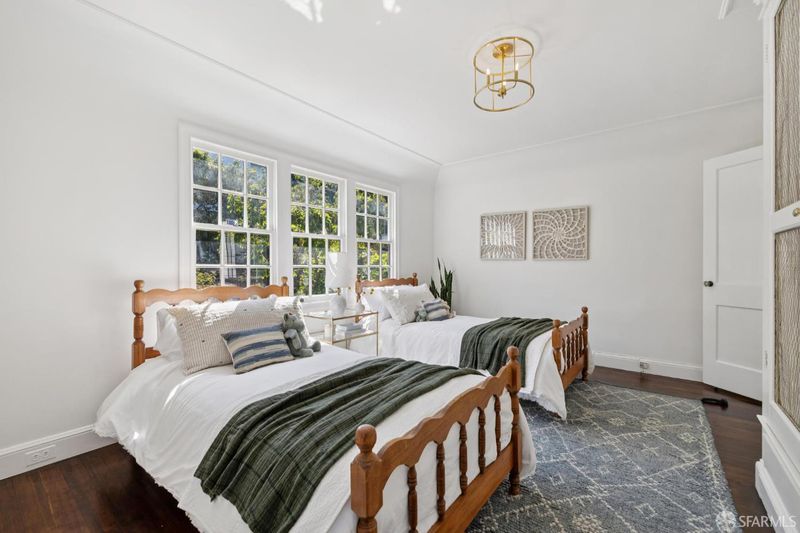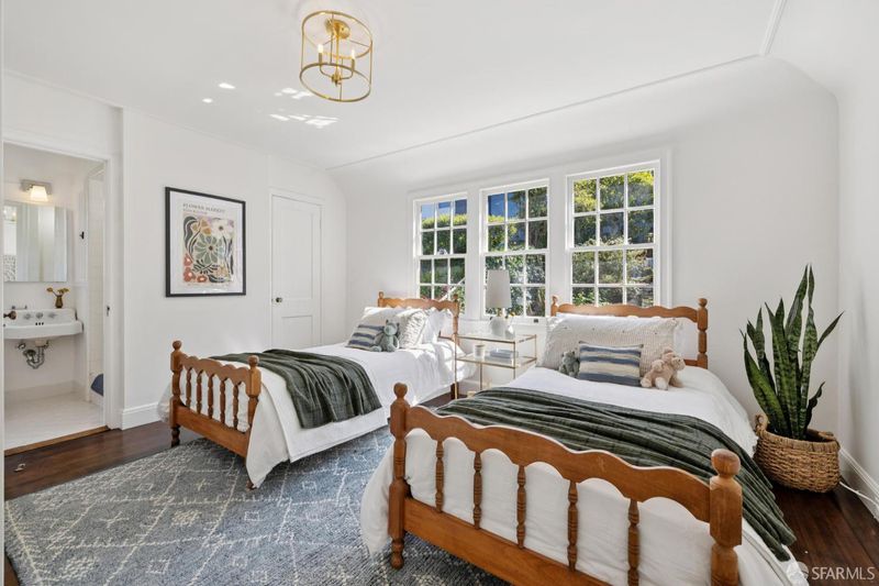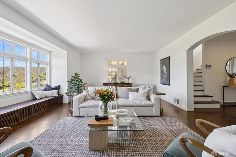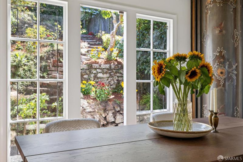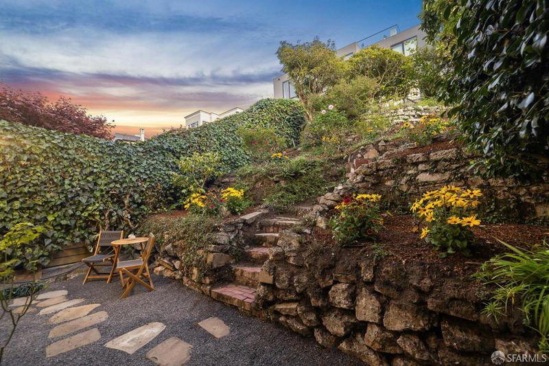 A rare offering on the Presidio Wall, this distinguished home enjoys a premier location directly across from the iconic Presidio Wall Playground and miles of scenic Presidio trails. With rich architectural character and enduring charm, the home is designed for both comfort and grandeur. The gracious living room features high ceilings, gleaming hardwood floors, and a cozy window seat framing captivating views of the Bay, Presidio, and Park. The spacious dining room, exquisitely detailed, opens to the mature garden, while the kitchen offers inspiring outlooks, butler's pantry, and exciting potential for expansion. A powder room completes this level. Upstairs, there are four generously sized bedrooms and two full baths; the front-facing rooms, including the primary suite, capture sweeping views of the Bay, Presidio, and Park, while the rear bedrooms overlook the garden, one with a quaint bridge leading to the upper patio. Flowering trees and roses create a serene outdoor retreat in the beautifully terraced garden. The lower level offers a two-car garage and ample storage. Set in one of San Francisco's most prestigious neighborhoods, the home is surrounded by natural beauty with effortless access to recreation, top-rated schools, and the refined shops and dining of Sacramento Street.