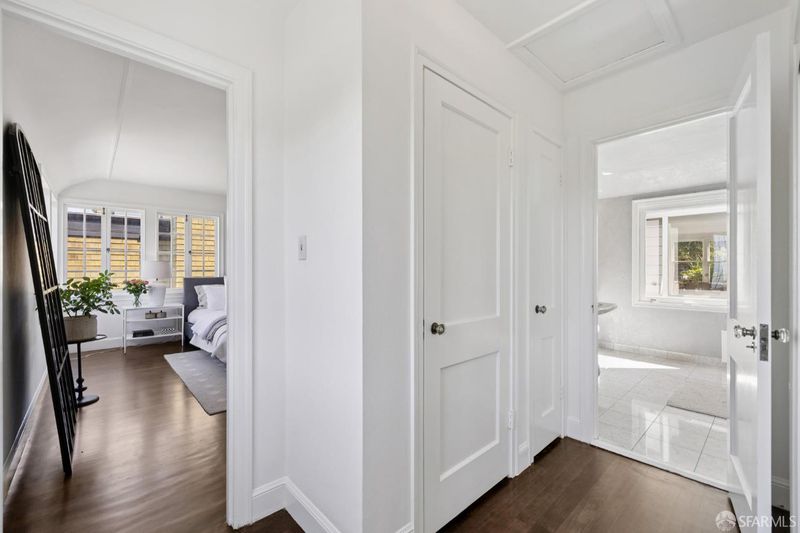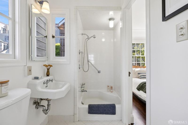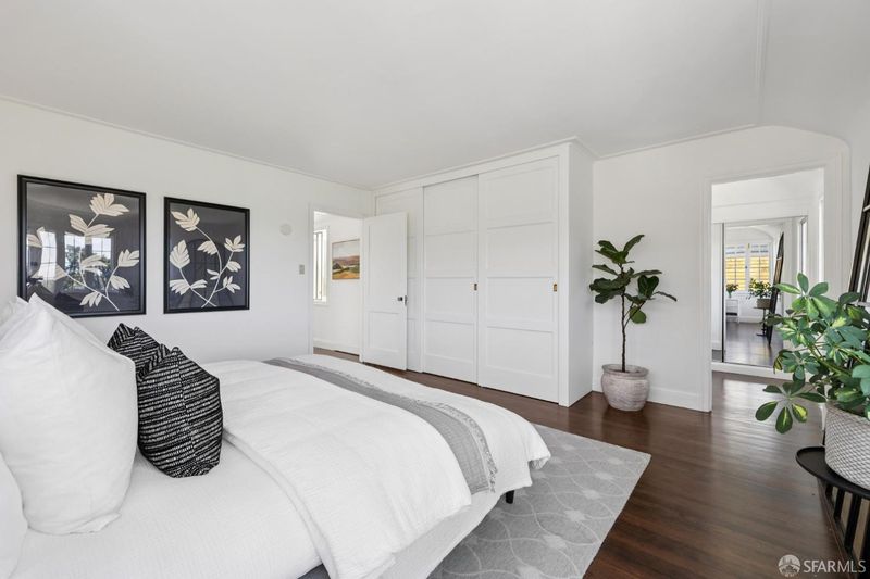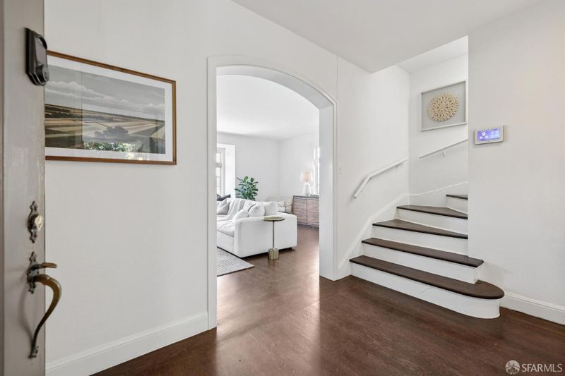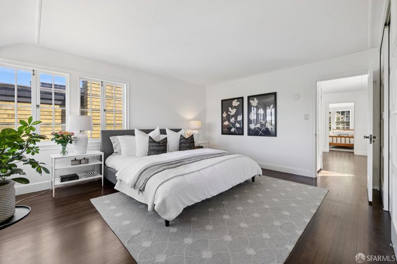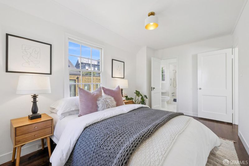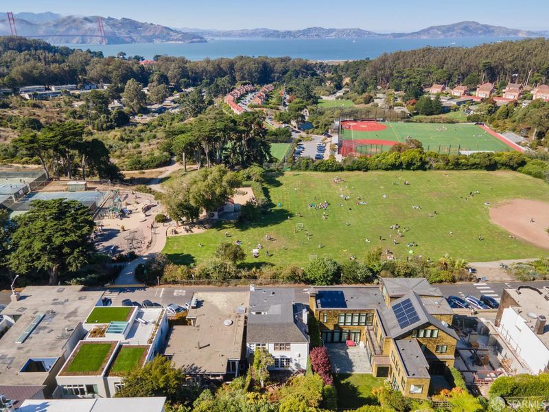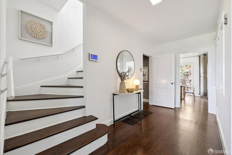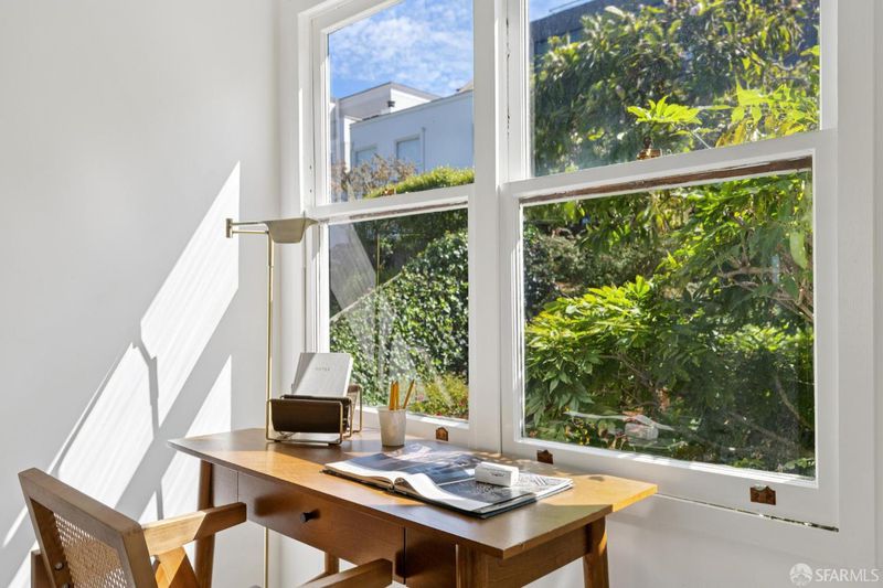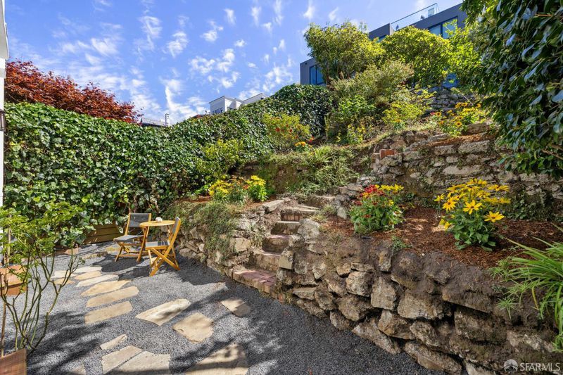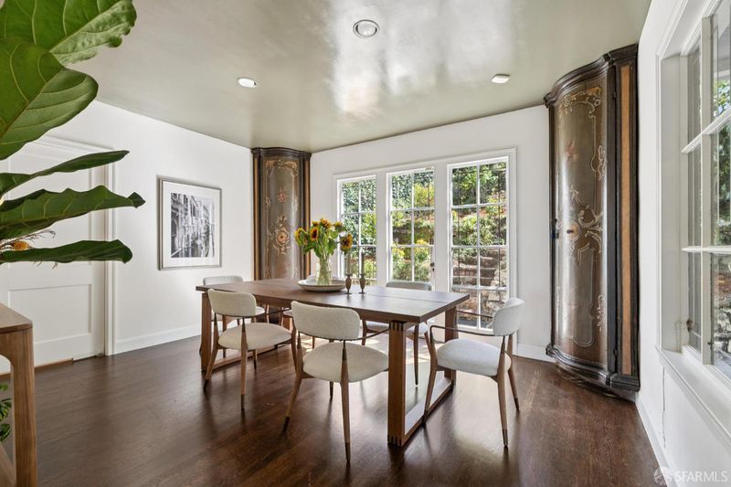A rare offering on the Presidio Wall, this distinguished home enjoys a premier location directly across from the iconic Presidio Wall Playground and miles of scenic Presidio trails. With rich architectural character and enduring charm, the home is designed for both comfort and grandeur. The gracious living room features high ceilings, gleaming hardwood floors, and a cozy window seat framing captivating views of the Bay, Presidio, and Park. The spacious dining room, exquisitely detailed, opens to the mature garden, while the kitchen offers inspiring outlooks, butler's pantry, and exciting potential for expansion. A powder room completes this level. Upstairs, there are four generously sized bedrooms and two full baths; the front-facing rooms, including the primary suite, capture sweeping views of the Bay, Presidio, and Park, while the rear bedrooms overlook the garden, one with a quaint bridge leading to the upper patio. Flowering trees and roses create a serene outdoor retreat in the beautifully terraced garden. The lower level offers a two-car garage and ample storage. Set in one of San Francisco's most prestigious neighborhoods, the home is surrounded by natural beauty with effortless access to recreation, top-rated schools, and the refined shops and dining of Sacramento Street.