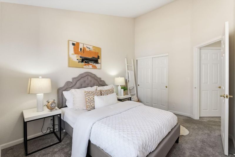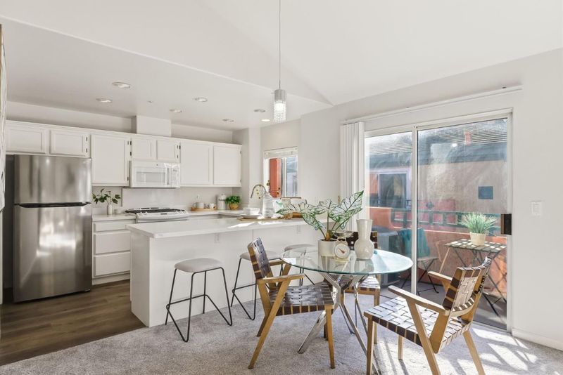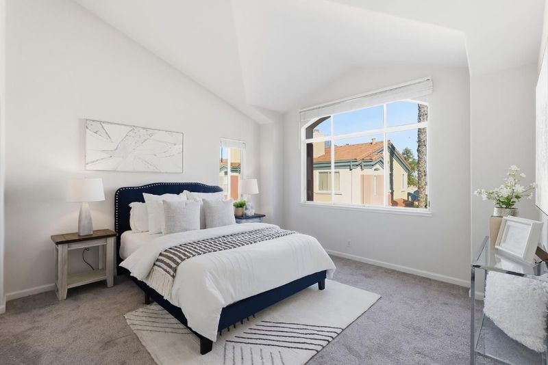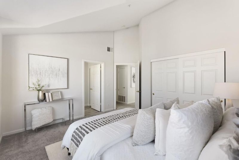 Rarely available top-floor corner unit in prime Cupertino! Stunning 2b/2ba home boasts soaring ceilings, abundant natural light, and a modern open layout. Featuring a private patio overlooking sparkling poolperfect for morning coffee or sunset entertaining. Enjoy spacious bedrooms, a functional laundry room off the kitchen, and ample storage. Central AC. Nestled in a highly sought-after, walkable neighborhood with elite Cupertino schools. Great complex with 2 gated parking spaces (1 assigned, 1 permit). Truly a must-see!