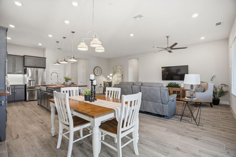 Only a few years new and located in Brentwood’s sought-after active adult community, Kindred & Balfour, this stunning 3-bedroom plus den/office, 3 full bathroom corner-lot home is beautifully updated and truly move-in ready, featuring over $125,000 in upgrades. The modern kitchen shines with GE Café appliances including an induction cooktop & convection oven, butcher block center island, pantry, stainless steel farmhouse sink, Align pulldown faucet, under-cabinet lighting, and reverse osmosis water filtration. Enjoy casual meals in the breakfast nook overlooking the covered patio or gather around the expanded island. Upgraded tile flooring enhances the main living areas, with plush carpet in the bedrooms. The private primary suite, tucked away at the rear of the home, features a barn door entry to the updated en suite with large walk-in shower, dual vanity, private water closet, and an organized walk-in closet. Two additional guest bedrooms, including one with a private en suite, offer exceptional flexibility. Step outside to the extended covered patio, perfect for outdoor dining and entertaining. Ideally located near the community clubhouse featuring pool and spa, pickleball and bocce courts, and vibrant indoor and outdoor social spaces. Welcome to your home sweet home!