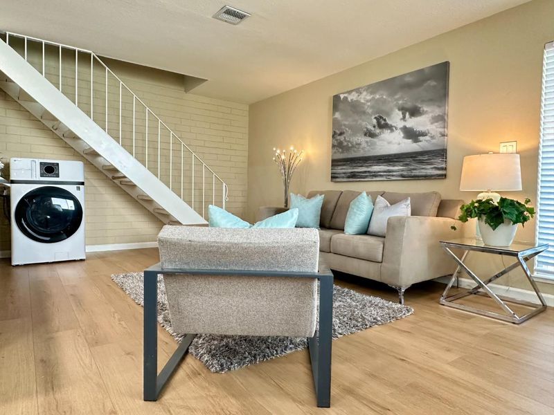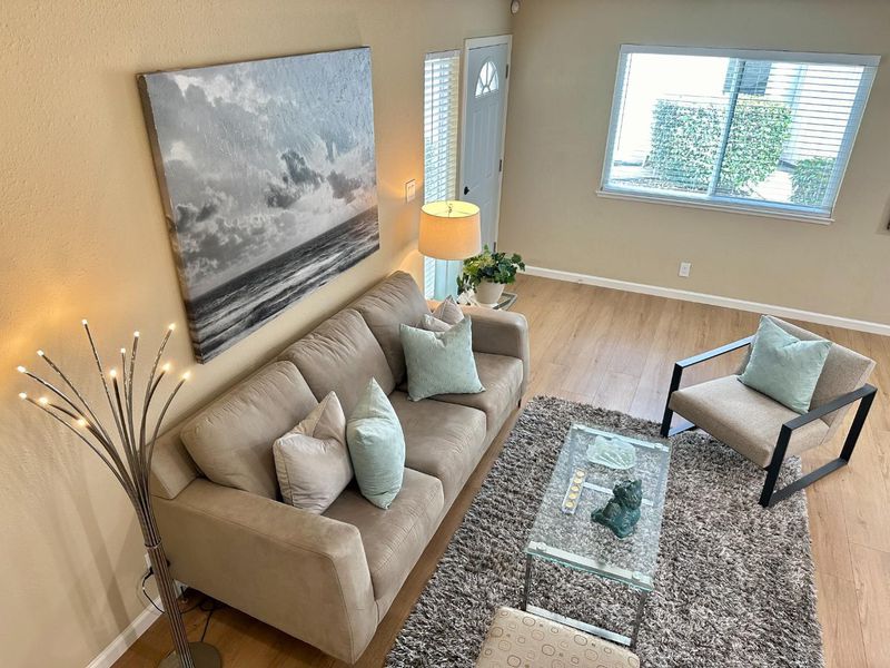 Remodeled two story townhouse style condo with 2 bed and 1 bath in a quiet neighborhood, new front door, new window blinds, new laminate floor downstairs, newer interior paint. Gourmet kitchen with new quartz countertop, cabinets, sink, faucet, kitchen hood, dishwasher, newer range with gas stove and oven, and refrigerator. New washer and dryer combo in unit. Upstairs laminate floor throughout. Bathroom with new vanity and laminate floor. Two bedrooms (10.5' x14' and 11'x11') with ceiling lights. One covered carport and one extra parking space behind the carport. Two closets in the carport area for storage. Amenities include swimming pool, playground and picnic area. Easy access to highway 680,580 and shopping plazas. Award winning Foothill High School.