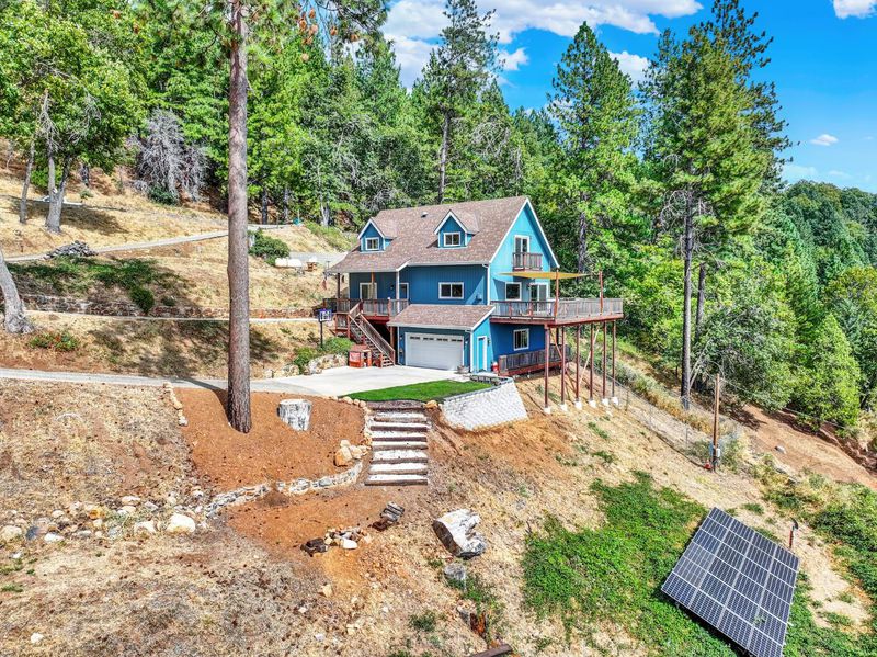 Experience Peaceful Living with Unmatched Panoramic Views! Welcome to your dream mountain retreat just off 8 Mile Rd this stunning, newly built home in 2020 complete with owned solar offers the perfect blend of comfort, style, and serenity. Located only 30 minutes from skiing and 45 minutes from Sacramento, this home features rich wood flooring and a sunlit living room with large window framing the natural beauty outside. The chef's kitchen includes granite countertops, stainless steel appliances, a large island, and ample cabinetry. Upstairs are two spacious bedrooms, each with private ensuite bathrooms. The primary suite is a true sanctuary with a walk-in closet, steam shower, and private balcony. The garage is a standout with epoxy floors, climate control, and room for a gym, workshop, or toys. But the real showstopper is the expansive deck over looking the valley offering awe-inspiring panoramic views, perfect for morning coffee or evening sunsets. Situated on nearly an acre with an adjacent .81-acre lot also available for purchase. Discover the peaceful lifestyle you've been dreaming ofjust 5 minutes from local conveniences, yet a world away.