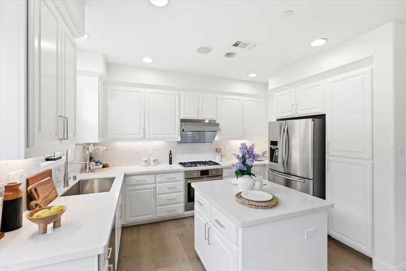 - Cooktop - Gas, Countertop - Quartz, Dishwasher, Garbage Disposal, Island, Oven - Electric, Refrigerator