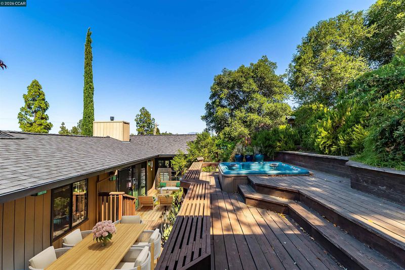 Set along a private lane with its own gate, this Lafayette retreat offers rare seclusion with everyday accessibility. Situated on a half-acre lot, the 3-bedroom, 2-bath home spans over 3,300 sq ft and is surrounded by a lush, wrap-around garden with seven decks, creating multiple outdoor spaces for relaxing, entertaining, or enjoying nature throughout the day. Inside, the flexible layout features multiple living areas, hardwood and tile flooring, a cozy fireplace, and a bright kitchen with generous cabinetry and modern appliances. Andersen wooden patio doors add warmth and character, while large windows invite abundant natural light and frame peaceful hillside views. Just minutes from BART, downtown Lafayette shops, restaurants, and top-rated schools, this home is ideal for those seeking a secluded, garden-centered lifestyle without sacrificing convenience.