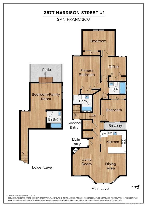 Welcome to your sunlit Mission Oasis! This home's main level boasts three expansive bedrooms, a full-sized office, two baths, and a great room with gas fireplace and bay windows. Lower level showcases indoor-outdoor living with walk-out access to a private patio and the large shared rear yard. The lower fourth bedroom, staged as a family room, enjoys a private bath and separate entrance from the building, as well as internal stairs to the upper level. Transportation is simple, with 2-car garage parking and a bike lane in front. The home is adjacent to some of the best amenities of the Mission: a quick stroll to Flour + Water, Penny Roma, Trick Dog, True Laurel, Gus's Community Market, and Mission Cliffs.