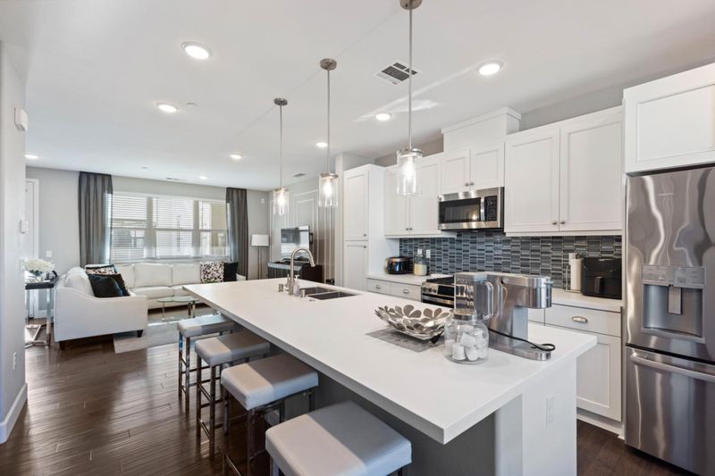FORMER MODEL HOME! Built by Taylor Morrison. Stunning Residence 5X MODEL at Elev8tion offers 3 bedrooms, 3.5 baths, and 1,887 square feet of luxury living space! Designer select features throughout including upgraded countertops, cabinets, custom backsplash, lighting, pendant lights, flooring, Security Audio, and stainless steel appliances. The ground floor of the home features an attached two-car garage that leads to the bedroom with private bath- perfect for guests. Head upstairs to the second level and enter the large open concept living, dining, and gourmet kitchen area with a generous island. Plus, a deck off the great room. The third floor features a spacious owner's suite with an oversized walk-in-closet, dual vanities, and a walk-in shower. A second bedroom with en-suite bath and walk-in closet, and laundry room round out the top floor.Bike or Uber to Amazon,Google,Microsoft,Meta and many tech companies. 5 mins drive to Caltrains Station,supermarkets and downtown restaurants.Easy access to Hwy 101,237 and Central Expwy makes commuting effortless.Don't miss this incredible opportunity to own a modern,move in ready home in one of Silicon Valley most desirable neighborhoods.