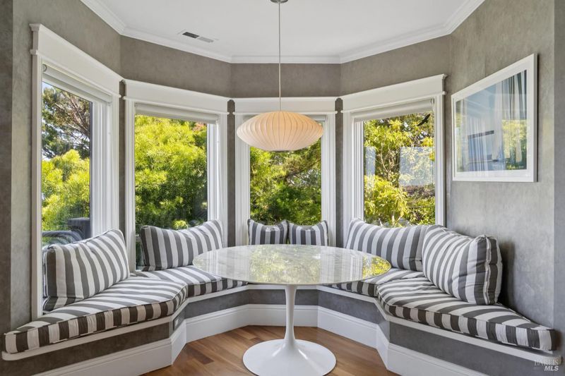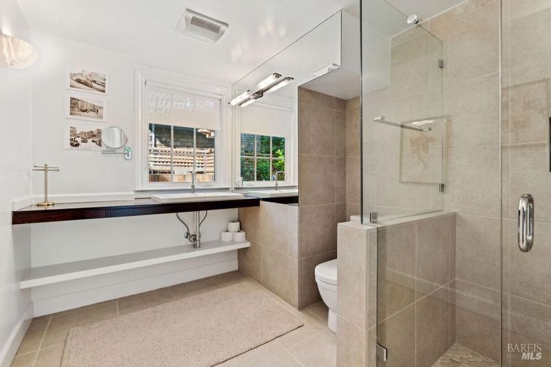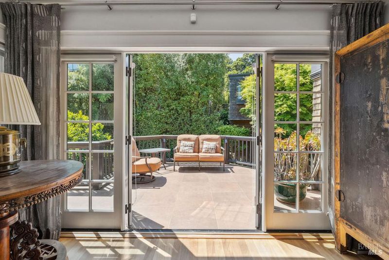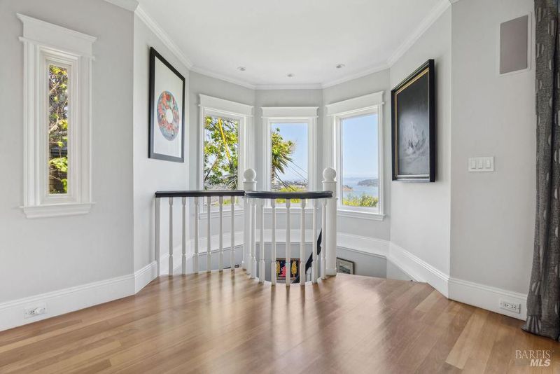 From breathtaking water views of the Bay and SF skyline to the endless green of the gardens & trees and ease of access to downtown Sausalito and San Francisco, 39 Cooper Lane offers a rare combination of serenity and city life. Nestled on a flat lot in the heart of Sausalito's coveted and charming Banana Belt, this hidden gem blends historical elegance with quiet luxury. A classic shingled residence, the property was once part of the Sausalito Tennis Club, adding to its rich character and unique story. At approx. 3,000 square feet, this 2-story home features 4 bedrooms and 4 bathrooms, including a grand Primary Suite with a private patio, fireplace, den/office area, and walk-in closet. A separate garden in-law suite with its own private entrance and bath adds an element of versatility and privacy. The residence boasts a desirable open floor plan that enhances the living experience. Step into the large open living area, framed by gorgeous wood floors and a cozy fireplace, all set against expansive Bay views starting with the San Francisco skyline and extending to Angel Island and Belvedere. The well-appointed kitchen seamlessly connects to both the living and dining rooms, perfect for entertaining. A visually stunning rounded eat-in banquette off kitchen offers a more casual experience. French doors lead to a beautifully-tiled balcony patio, providing a seamless transition to the outdoors (perfect for a furry friend). Here, the level lawn, surrounded by mature trees and stunning flowers, offers a private sanctuary filled with sunshine. With a two-car garage and add'l parking, convenience is at your doorstep.downtown Sausalito is only a few streets away and San Francisco beckons just a few minutes across the Golden Gate Bridge. This exquisite home combines historical charm with modern amenities, making it a rare find in an enviable location known for its favorable weather and easy commute. Whether relaxing in one of several private outdoor spaces or taking in the panoramic views, this property is a true masterpiece of Sausalito living.