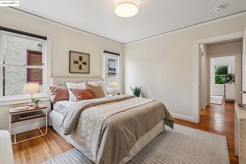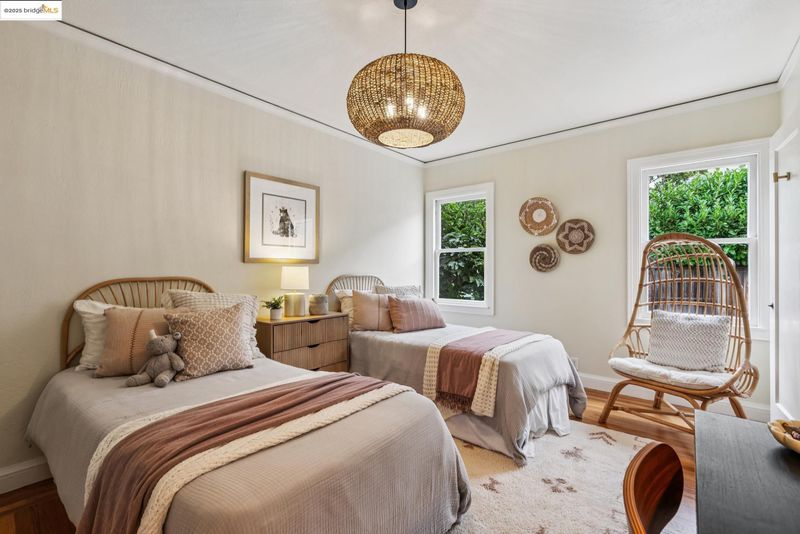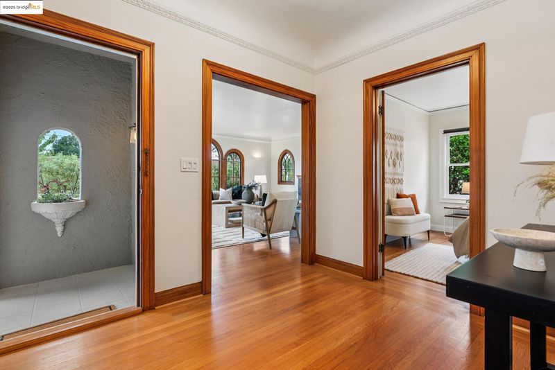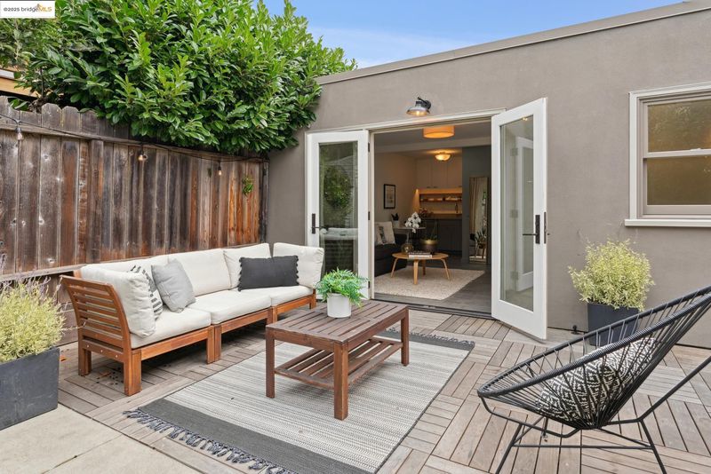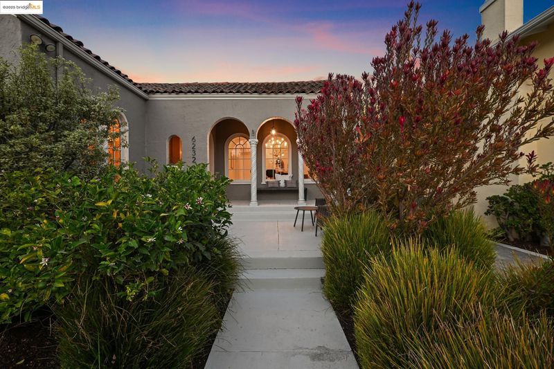 Pristine Mediterranean-style home located on one of Rockridge’s most coveted streets. The main residence features three bedrooms and one full bath, with a convenient half bath located in the third bedroom. The home is complemented by a modern, architect-designed one-bedroom, one-bath ADU. Thoughtfully updated throughout, this home blends timeless character with contemporary comfort. A private courtyard welcomes you with an inviting seating area framed by classic arched windows. Inside, the light-filled living room features floor-to-ceiling windows, a fireplace, and gleaming hardwood floors. The formal dining room carries the same elegant arched detailing, while the galley-style kitchen provides ample cabinetry and space for casual dining. All three bedrooms are conveniently situated on one level. Outdoors, a lush private garden with mature landscaping creates the perfect backdrop for entertaining or play. Modern amenities include: Solar, air conditioning, dual paned windows, and a tankless water heater. Ideally located just blocks from Chabot Elementary, College Avenue’s renowned restaurants and boutiques, and with effortless access to BART and San Francisco—no car required.