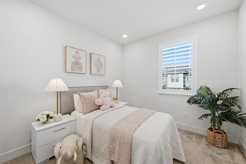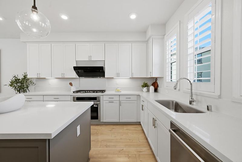 Built in 2019, this meticulously maintained townhome offers a bright, open-concept floor plan designed for modern living. A versatile ground-floor bedroom and full bath serve as an ideal guest suite, home office, or gym. Bathed in natural light, the southeast-facing living room flows seamlessly into the dining area. The gourmet kitchen is a chefs dream, featuring quartz countertops, premium stainless appliances (brand-new gas range/microwave/oven and a fridge with 10-year warranty), under-cabinet lighting, and a walk-in pantry. The upper level boasts a luxurious primary suite with soaring ceilings, plus two additional bedrooms with premium carpeting and a convenient laundry room. High-end upgrades include fresh interior paint, luxury vinyl plank (LVP) flooring, a 3-zone HVAC system, and dual-pane windows with elegant plantation shutters. Additional highlights: recessed lighting, side-by-side 2-car garage, and an accessible front entry perfect for strollers or wheelchairs.Located in a vibrant community with a clubhouse and playgrounds, you are steps from six parks, including Magical Bridge. Enjoy unparalleled access to shopping, dining, and major tech campuses: Apple, Meta, Google, Amazon, Nvidia, and LinkedIn. Low-maintenance living -HOA covers trash, sewer, water, and roof!