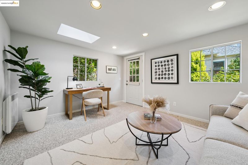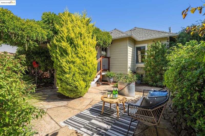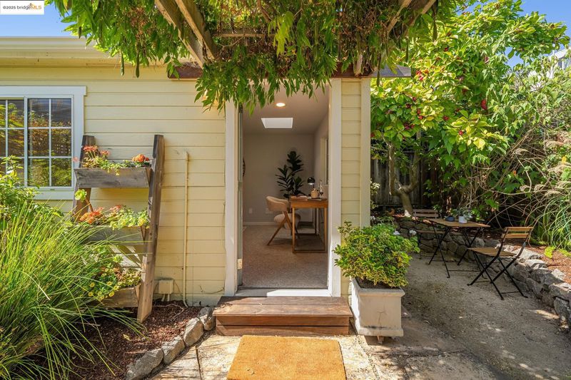 Welcome to this delightful single level home in the heart of Rockridge, perfectly blending character, comfort, and convenience. With two sunny bedrooms, a beautifully expanded kitchen, and an updated bathroom, the interiors are warm, inviting, and move-in ready. The property offers a one-car driveway and a sweet private garden, where a lush patio framed by mature trees and flowering plants creates the perfect setting for outdoor dining and relaxation. Adding even more value is the exceptionally spacious detached artist studio, complete with skylights—ideal for creative pursuits, a home office, or generous storage. Set on a quiet street yet just moments from the renowned Rockridge shops, restaurants, BART, and transportation, this home offers both tranquility and accessibility in one of Oakland’s most coveted neighborhoods.