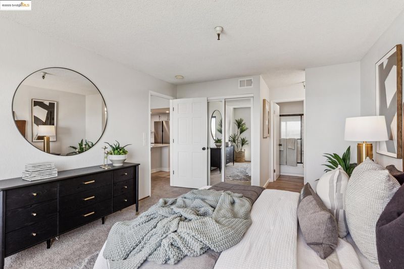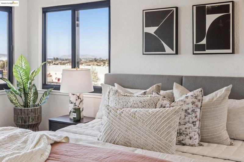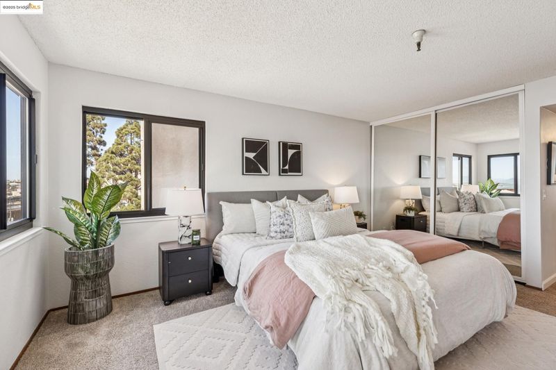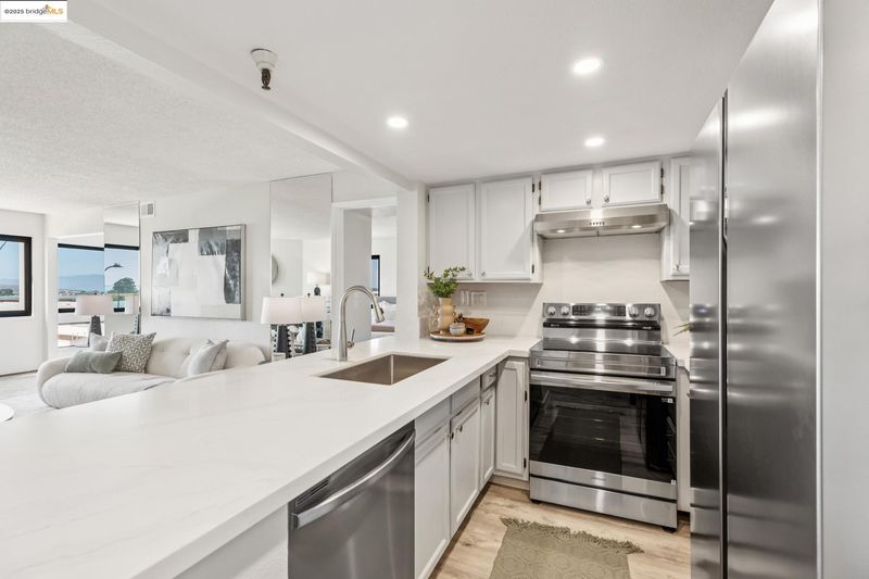 Wake up to morning light streaming through oversized windows, with the Golden Gate Bridge and Mount Tam greeting you in the distance. Evenings unfold over skyline views and dinner parties in the window-wrapped dining area—an effortless blend of cozy and cosmopolitan. The updated kitchen, complete with brand-new appliances and sleek countertops, flows seamlessly into bright, open spaces designed for connection and calm. A marble fireplace anchors the living area, and a smart, open layout makes everyday living feel effortless. Two spacious en-suite bedrooms offer a retreat, each with serene views and thoughtful privacy. A separate laundry room adds everyday convenience without compromising flow. This amenity-rich, gated community offers a pool, spa, gym, clubhouse, extra storage, and two deeded garage parking spaces. Just a few blocks to Pacific East Mall’s dining and shopping gems, 99 Ranch Market, El Cerrito Plaza, and more—you’re also minutes from Albany’s award-winning schools and enjoy quick access to BART, Transbay Bus, and I-80. HOA fee includes INTERNET, TV, WATER, GARBAGE and there are multiple Tesla chargers located just down the street.