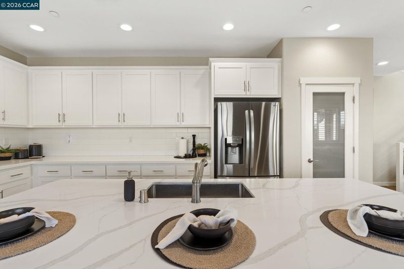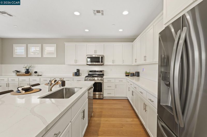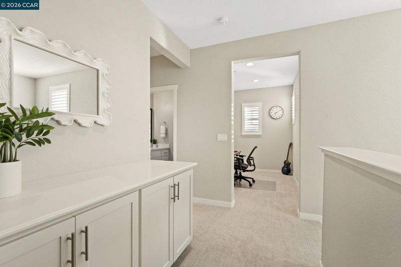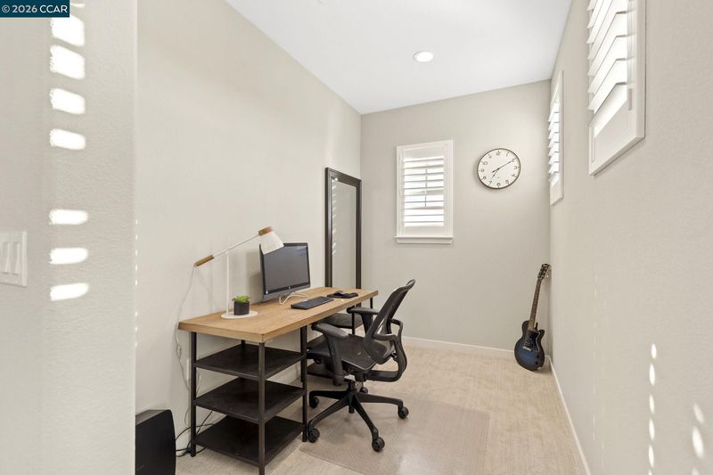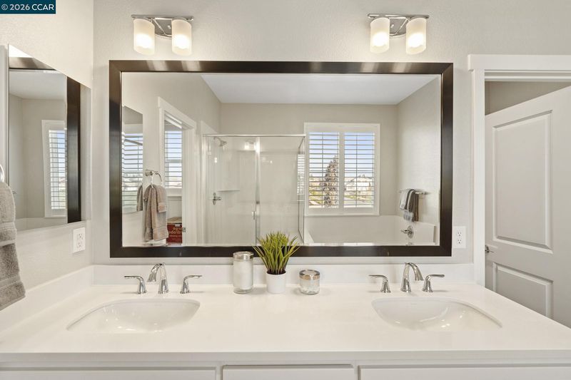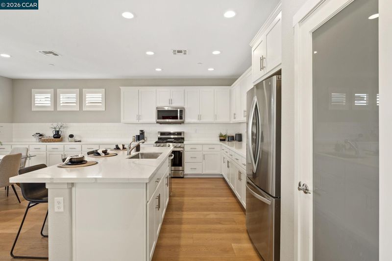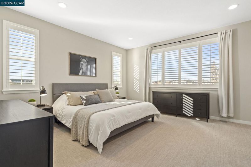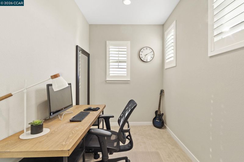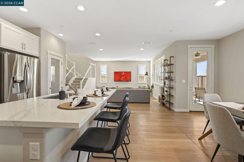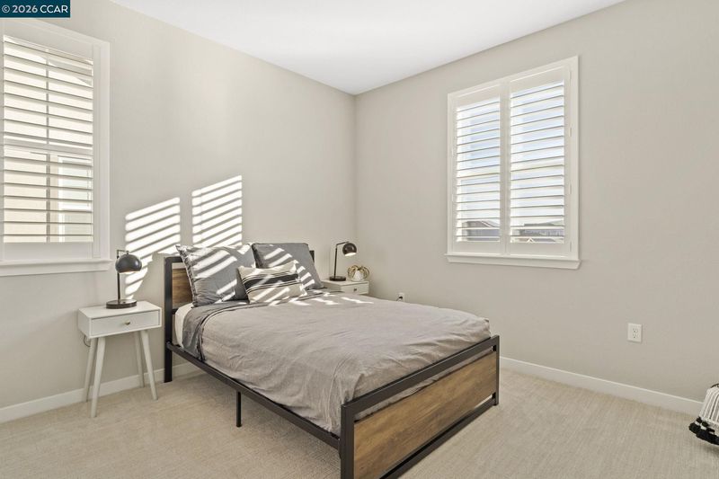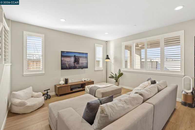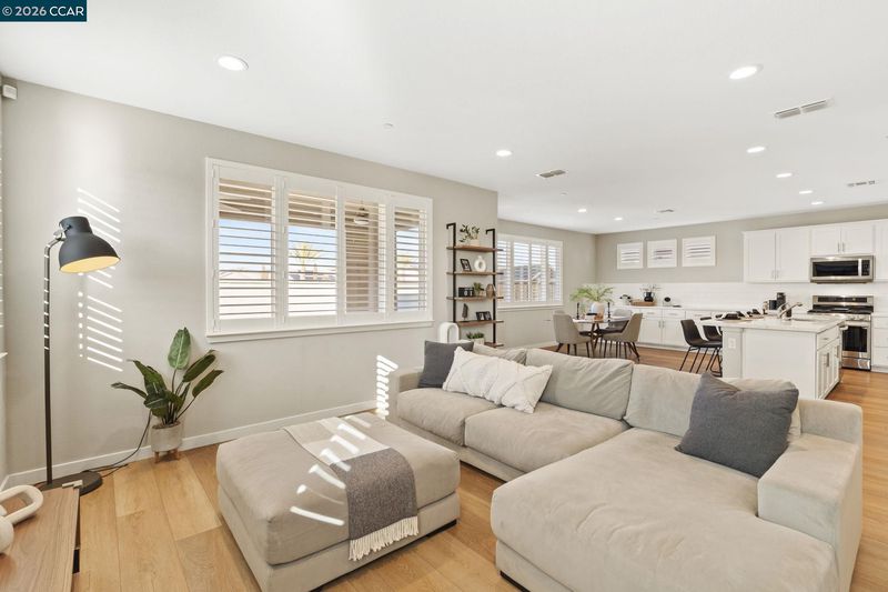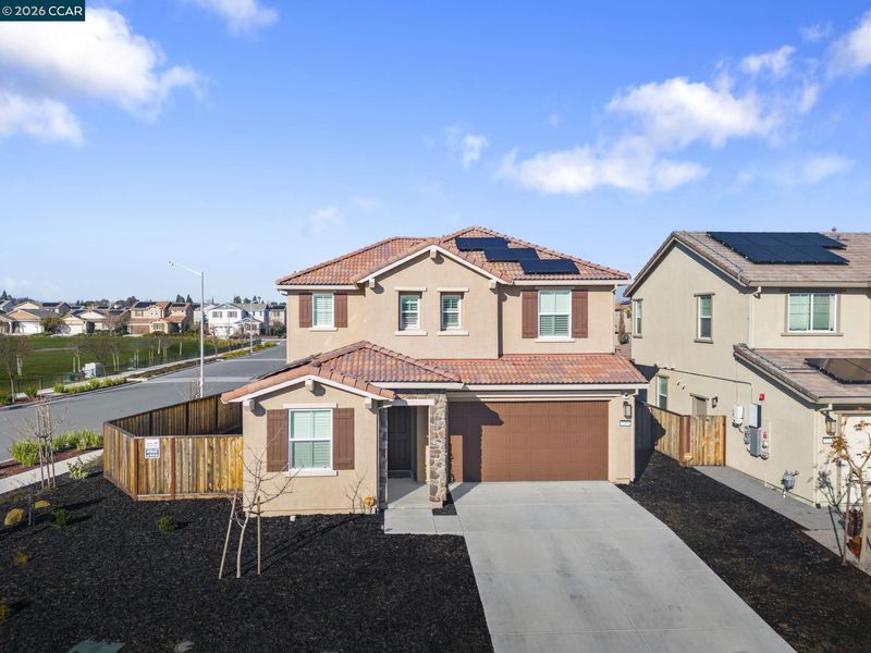 Welcome to this beautifully maintained newer home in one of Antioch’s most desirable neighborhoods. Built in 2021 with extensive builder upgrades, this 4-bedroom, 3-bathroom residence offers 2,240 sq ft of thoughtfully designed living space on a prime corner lot across from Bay Miwok Park, blending modern style with everyday comfort. The main level features an inviting open-concept layout where the living room and dining area flow seamlessly into the kitchen; perfect for entertaining or relaxed daily living. Luxury vinyl plank flooring runs throughout the downstairs, adding both durability and style. A downstairs bedroom sits adjacent to a full bathroom, ideal for guests, extended family, or a private home office. Upstairs, you’ll find plush carpeting, a spacious primary suite complete with a soaking tub, stall shower, and walk-in closet, plus two additional bedrooms and a full bathroom. An upstairs office space provides flexibility for remote work or study, while the large laundry room adds convenience right where you need it. Additional highlights include dual-pane windows, central heating and air, and a newly landscaped backyard ready for outdoor enjoyment. With its excellent condition, modern finishes, and ideal layout, this home checks all the boxes!